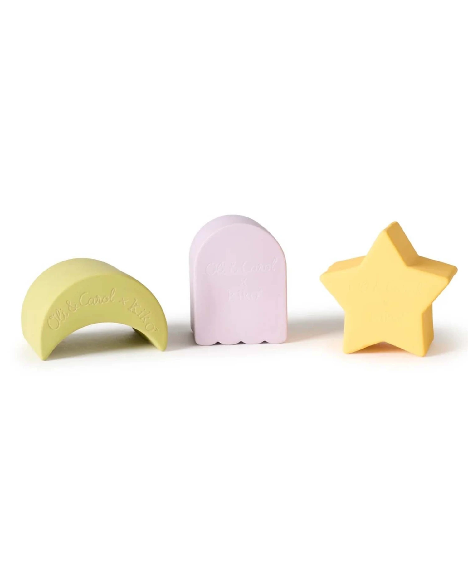 Floating Stacking Blocks for learning and play time Geometric Figures Pack Circle is a set of 3 natural rubber playable toys designed for sensory stimulation and imaginative play. Part of our collaboration collection with Oli & Carol, these colorful and versatile designs encourage learning through play.