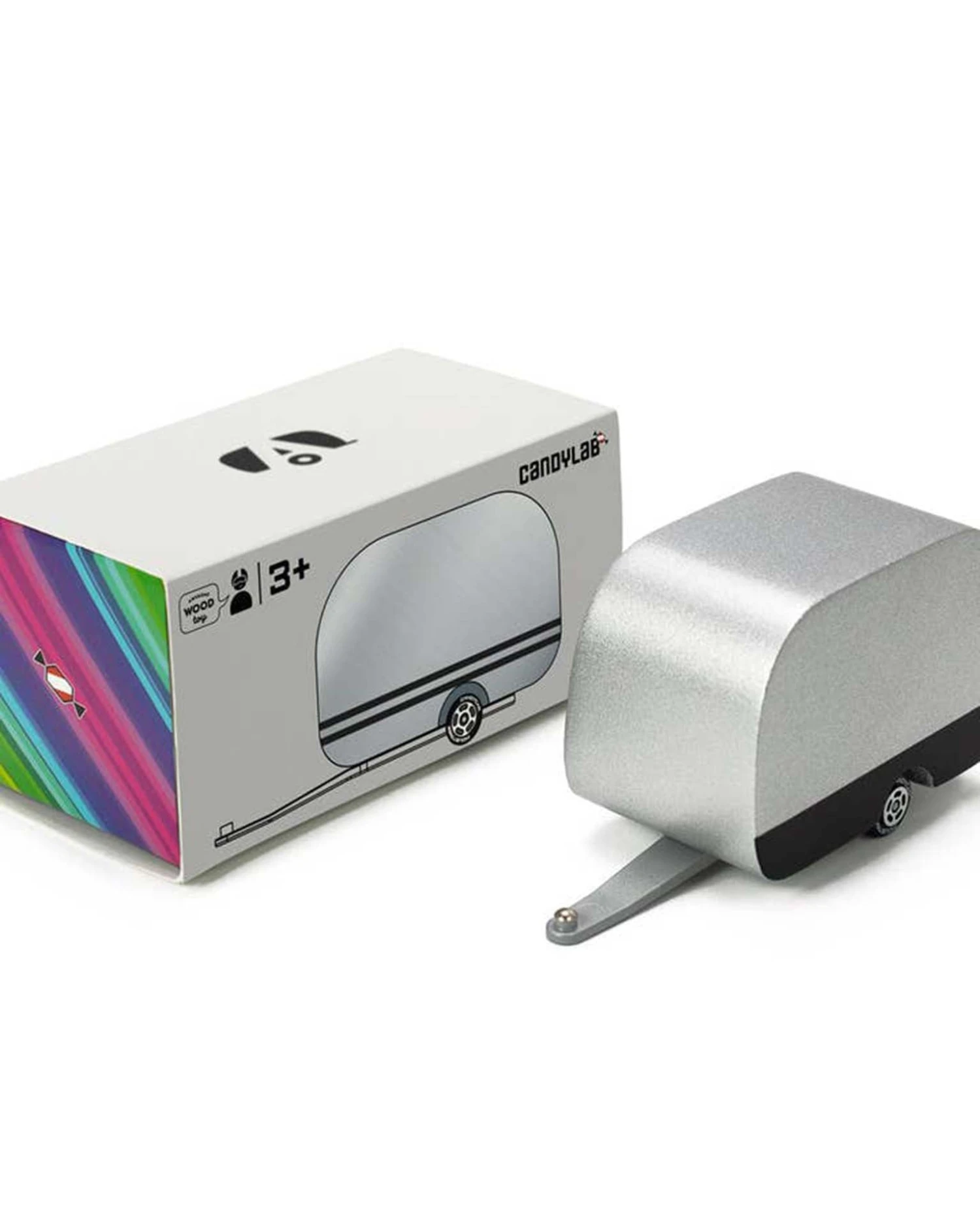 Pack your bags and hit the road with Candylab’s Candycar Airstream Camper! Painted in a shiny silver, this camper magnetically attaches to Candycars via the trailer hitch.