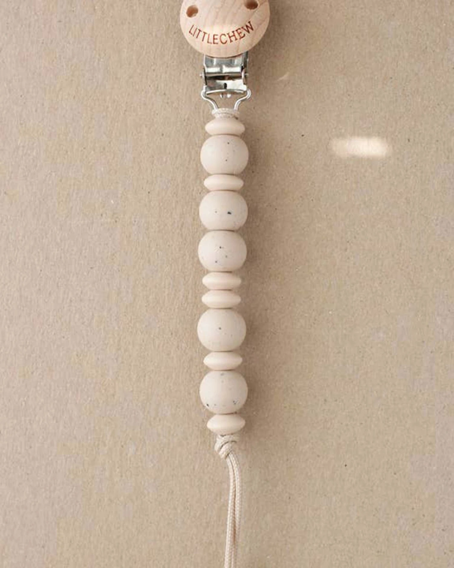 Alex pacifier clip is handmade of natural wood that has been treated with coconut oil. Versatile, timeless, and practical, inspired by nature and its simplicity.