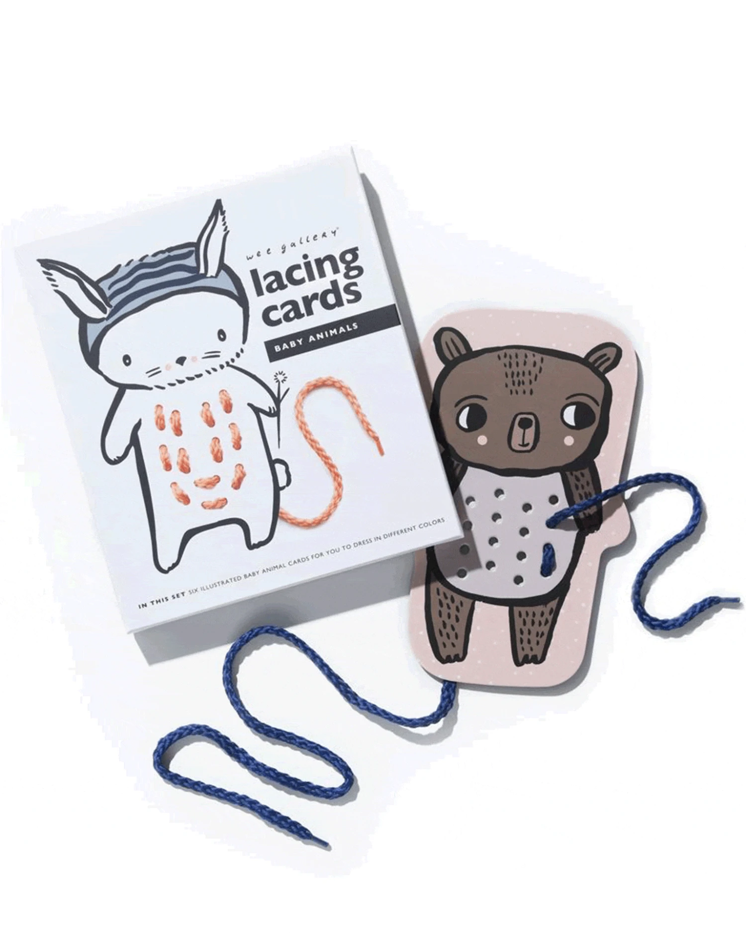 Dress up these adorable baby animals in color with our fun and educational lacing cards featuring Wee Gallery’s signature hand-painted illustrated characters.