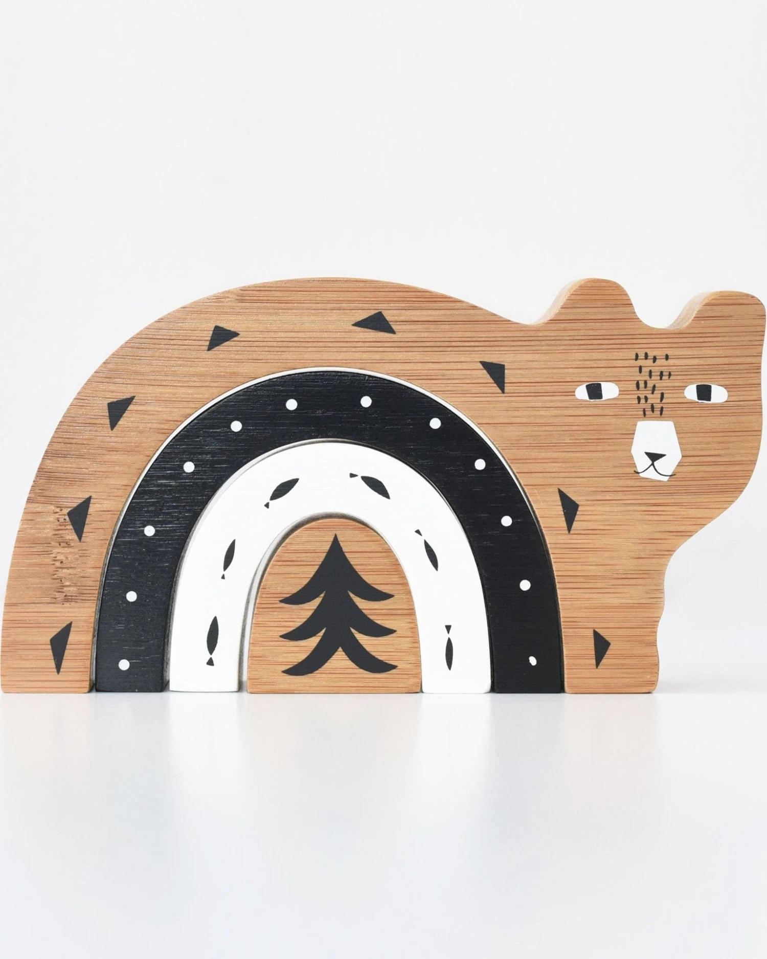 This adorable Nesting Bear from Wee Gallery is made from sustainable eco-friendly bamboo. Nestable, stackable, sturdy pieces make for plenty of opportunities for creative play. This toy comes with its own printed cotton bag for easy storage and gifting perfection.