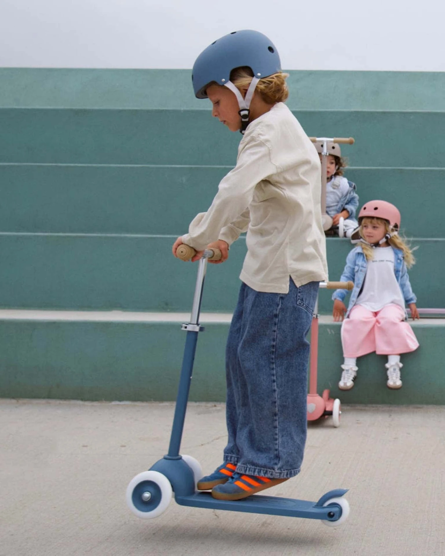 The design combines details with great functionality. This retro scooter is equipped with a T-handlebar that can be gradually adapted to three different heights as your kid grows. The rubber grips provide a good hold and the scooter deck with anti-slip tape ensures a stable and easy foothold. Going out for a scooter ride has numerous benefits for your child’s development as it improves the coordination, balance and fine motor skills, increasing confidence and making them unstoppable little kickers!