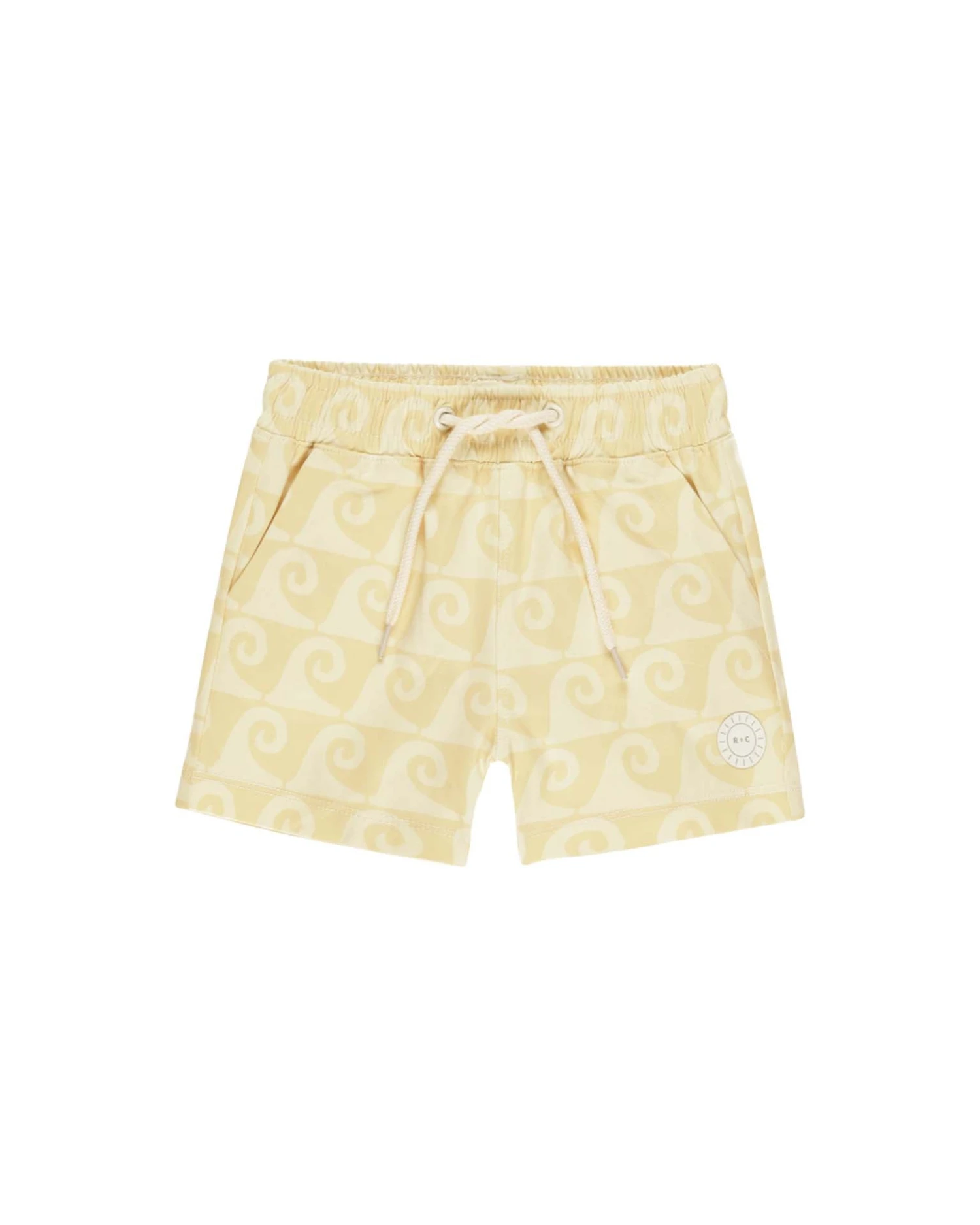 These soft boardshorts are perfect for pool and beach days! Featuring an elastic waistband with adjustable drawstring and pockets. Enjoy sunny beach days in this retro waves print.