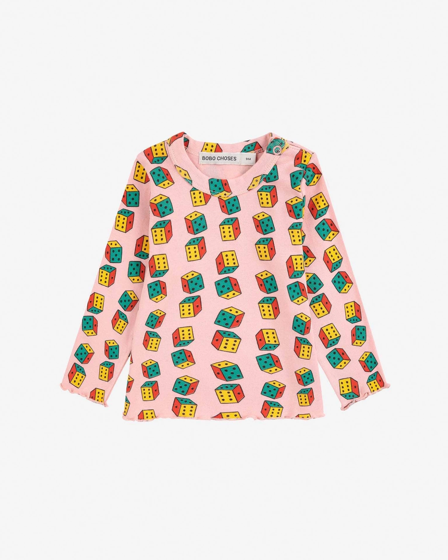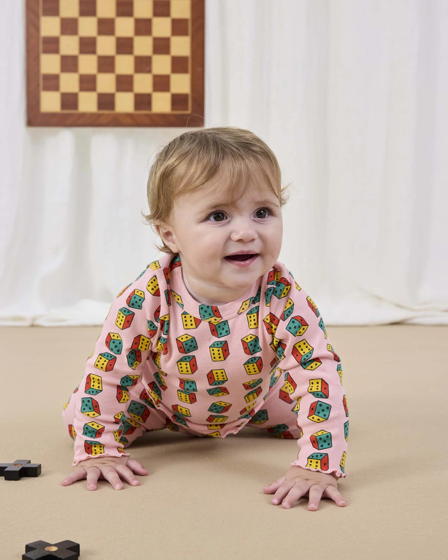 This light pink long sleeve tee from Bobo Choses features an all over dice print, making it a colorful and fun addition to baby’s wardrobe. Pair it with the matching leggings!