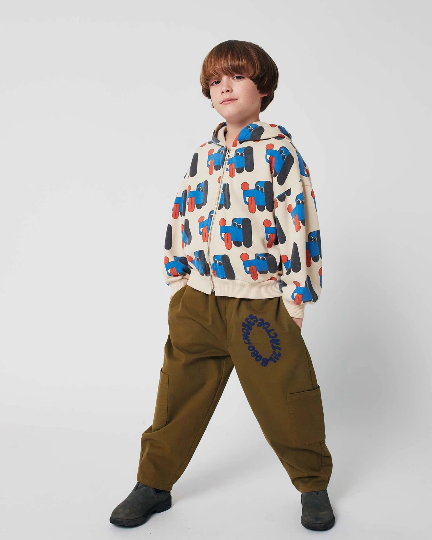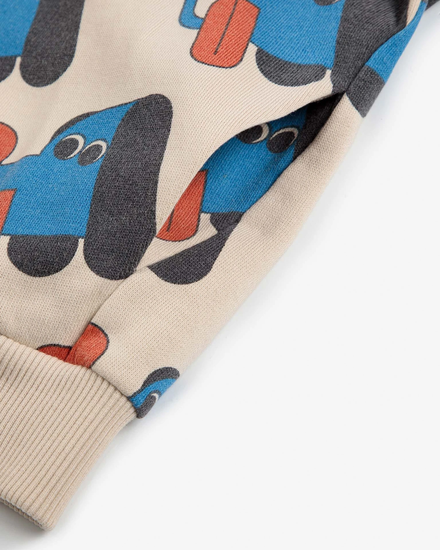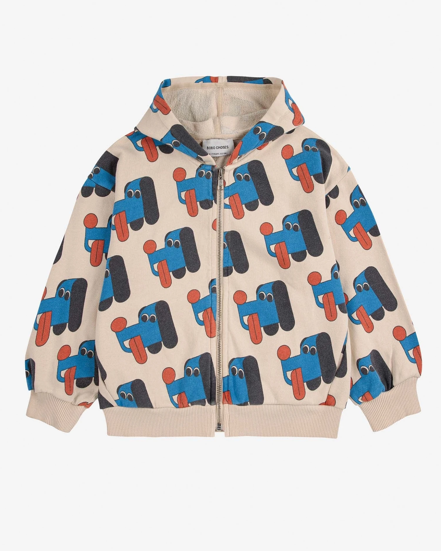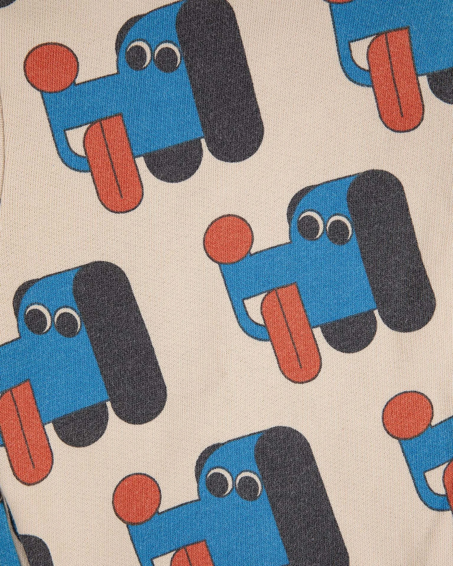 This zip-up hoodie is made of 100% organic cotton and features a doggy mate all over print. Pair it with the matching jogger sweatpants.