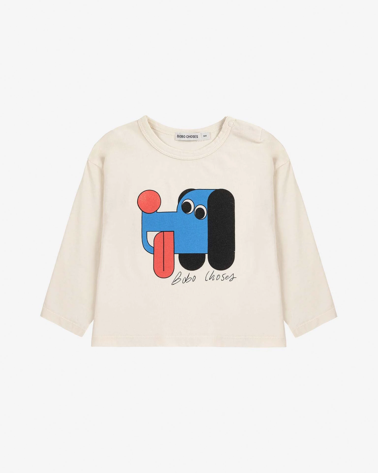 Good doggy! This fun long-sleeved t-shirt is perfect for layering as the days get cooler. Pair it with the doggy mate all-over joggers for a soft, organic cotton outfit.