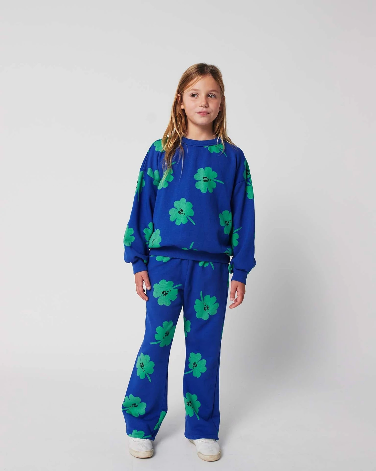 Lucky kids! This lucky clover crewneck sweatshirt from Bobo Choses is soft and cozy. Pair it with the joggers or the mini skirt!