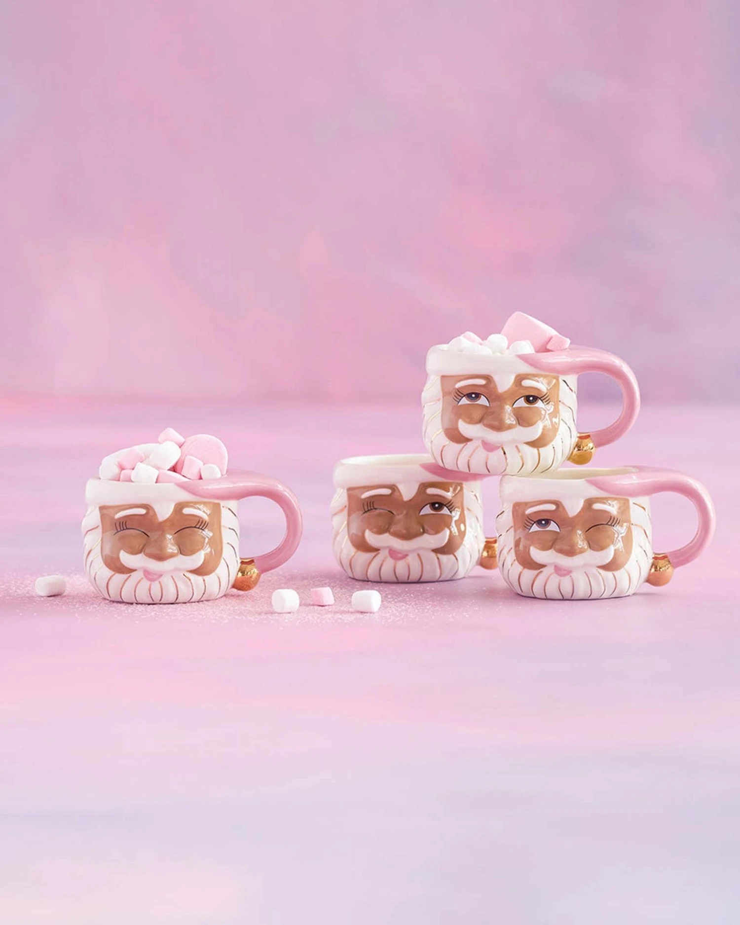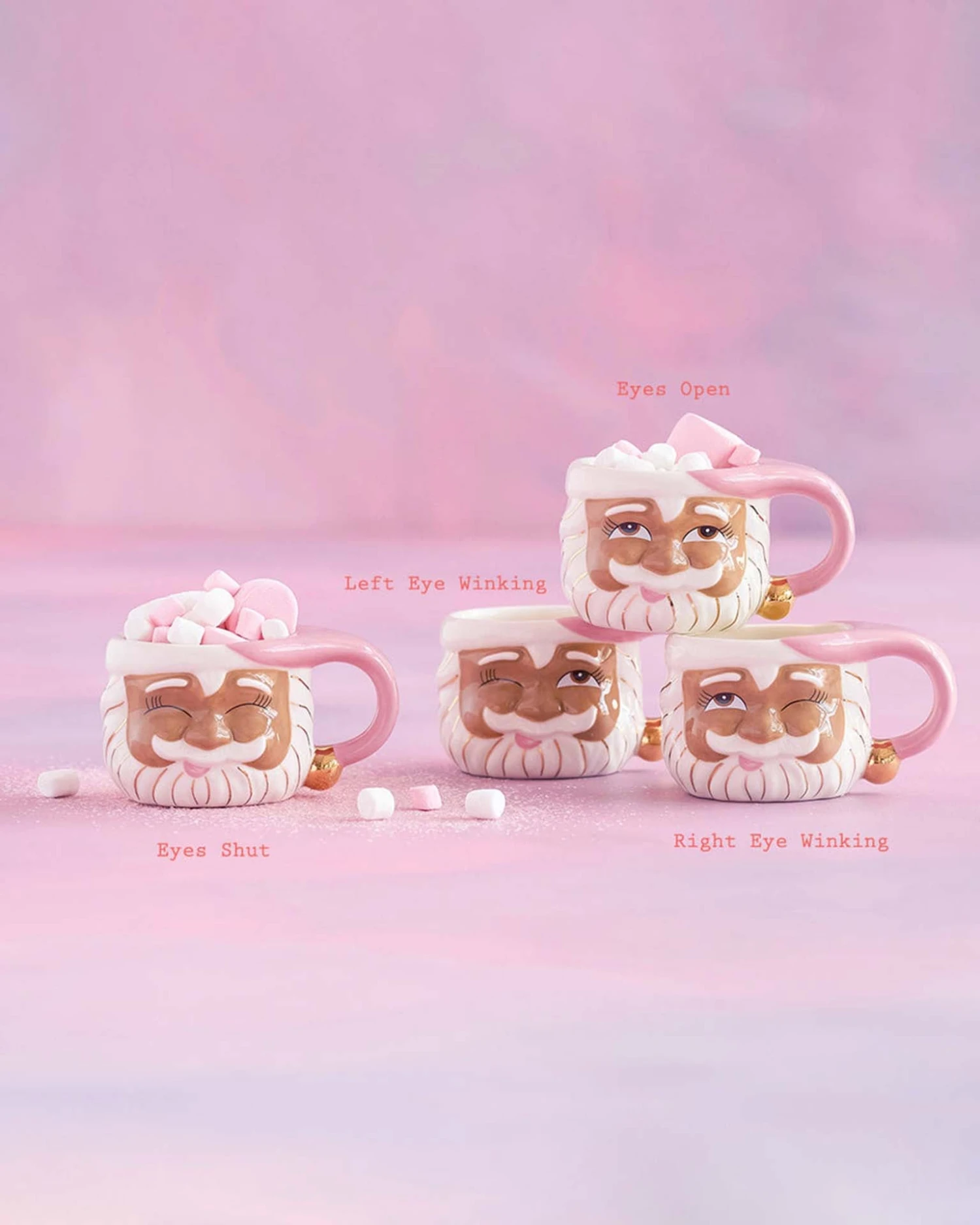 Perfect for your holiday hot cocoa, the Papa Noel Mug from Glitterville features a winking Santa face and a bit of festive gold detail. Please note that this purchase includes one mug.