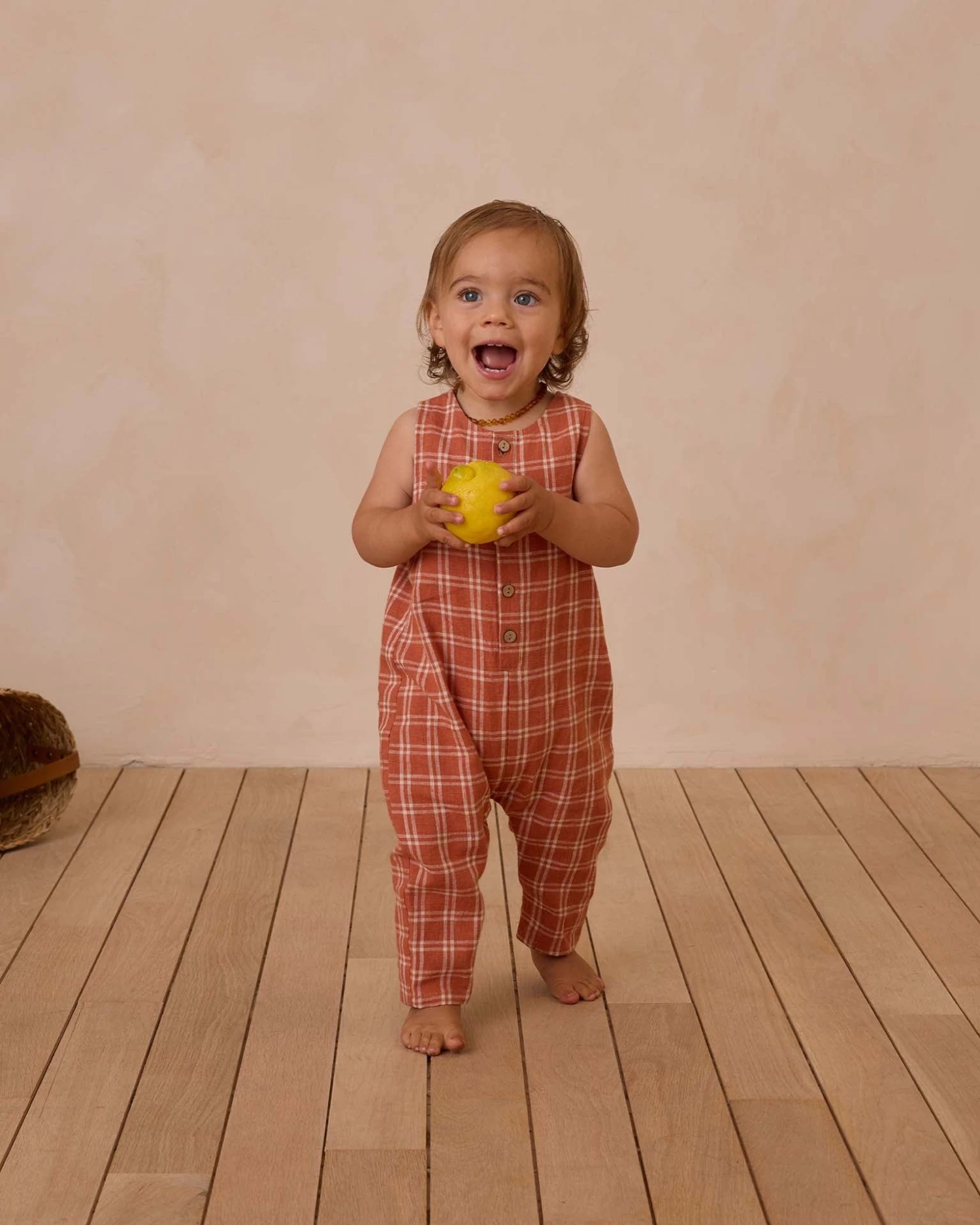 This lightweight sleeveless one-piece jumpsuit features a coconut summary placket, making this outfit a breeze. The check style is giving all the vintage summer feels.