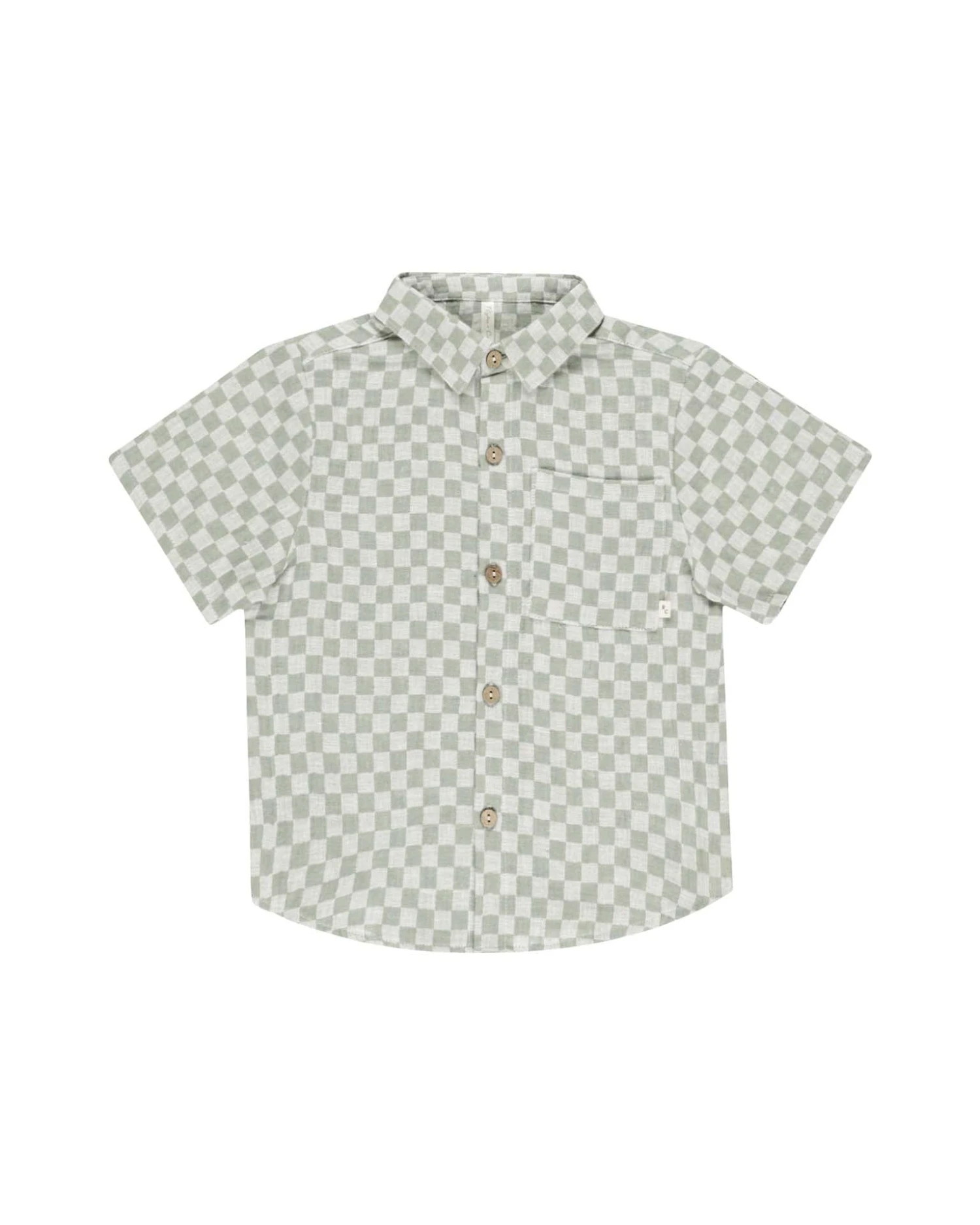 A classic collared boys short sleeve summary-down shirt with coconut summarys.