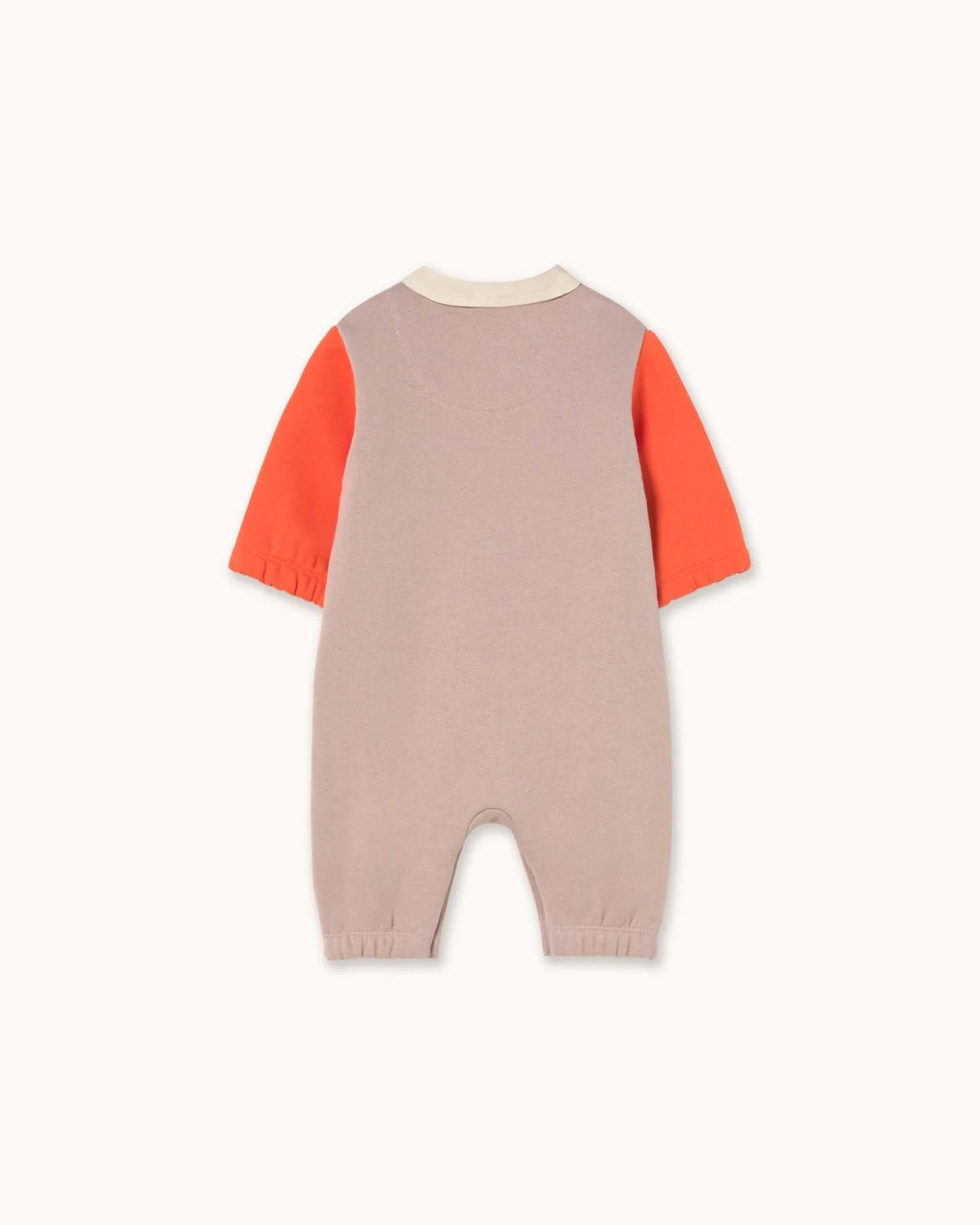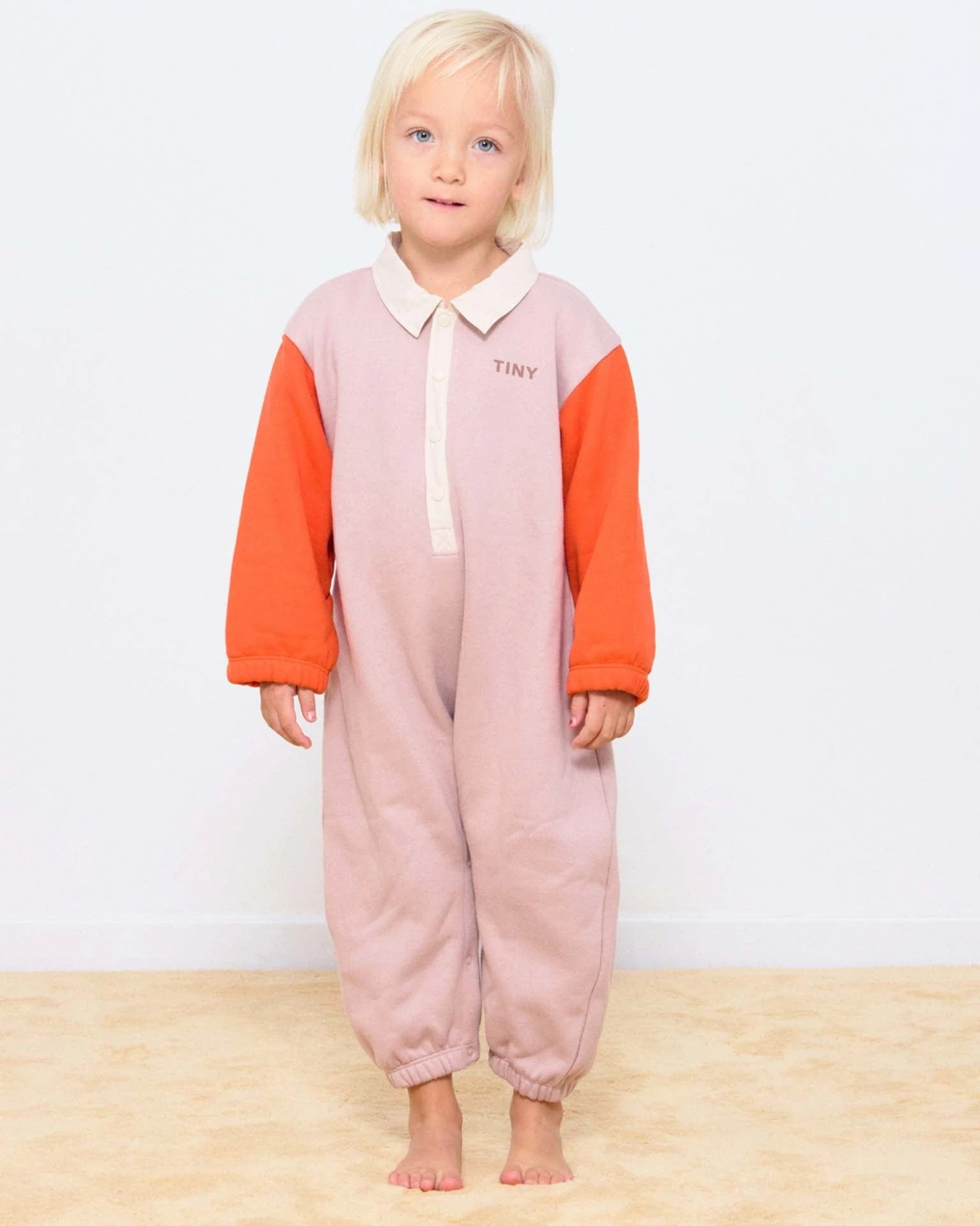 This fleece polo onesie from Tiny Cottons is made of soft organic cotton and features color block sleeves and snap summarys for easy changing. This one piece makes dressing your little one easy with a complete outfit in one!