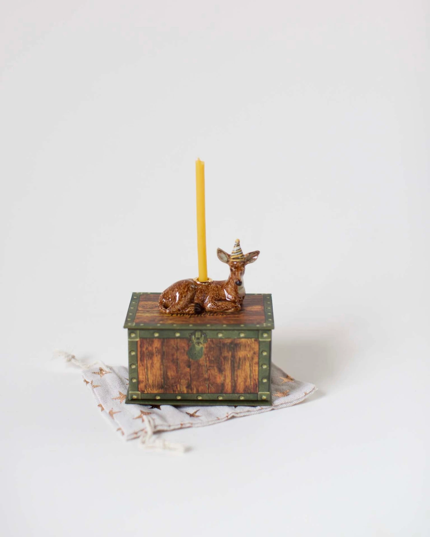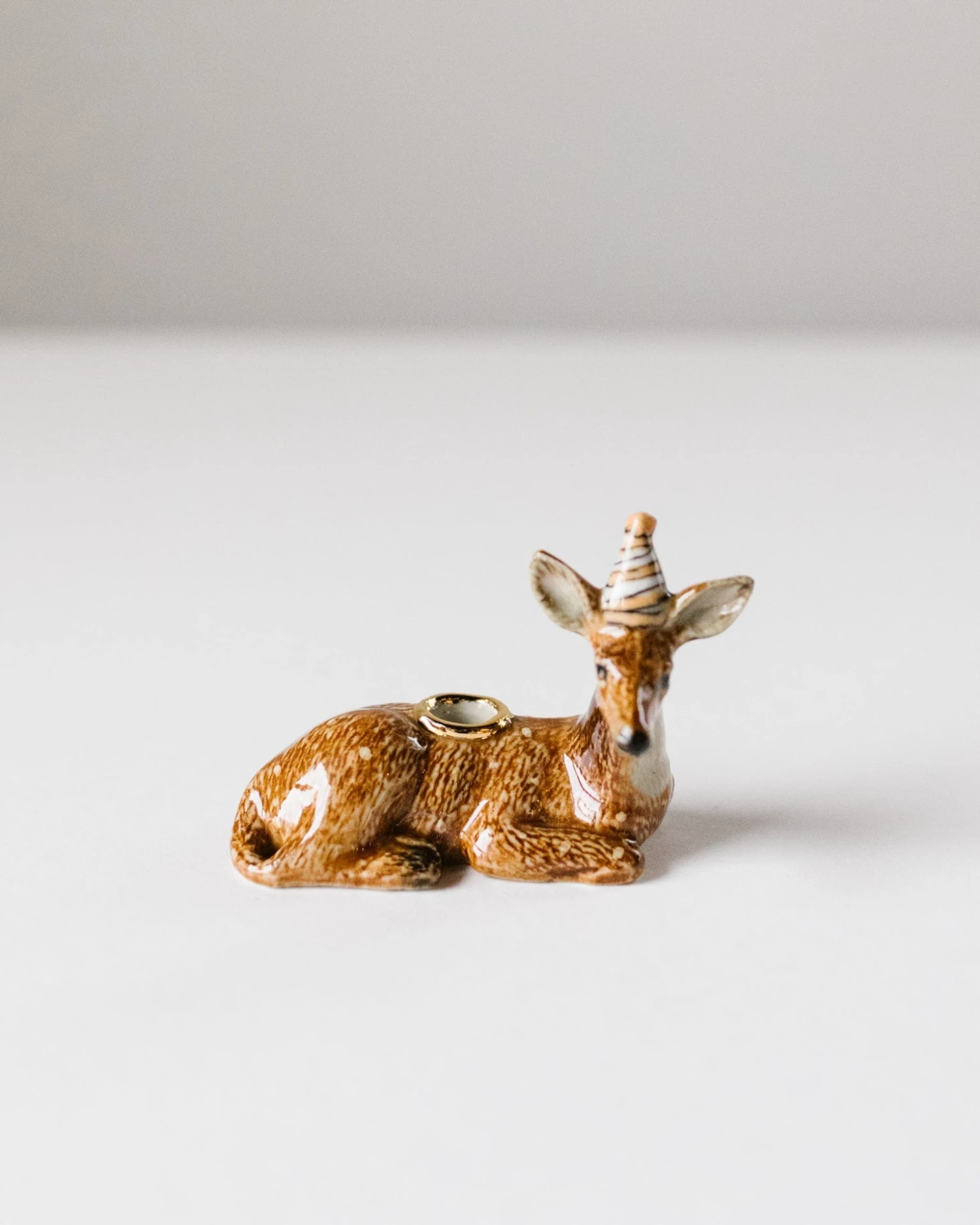 Celebrate with a little whimsy with this ceramic Deer Cake Topper from Camp Hollow. This hand-painted candle holder is the perfect accessory for that sweet special occasion. With heirloom-quality craftsmanship, this deer is sure to be a treasured family keepsake. Party on!
