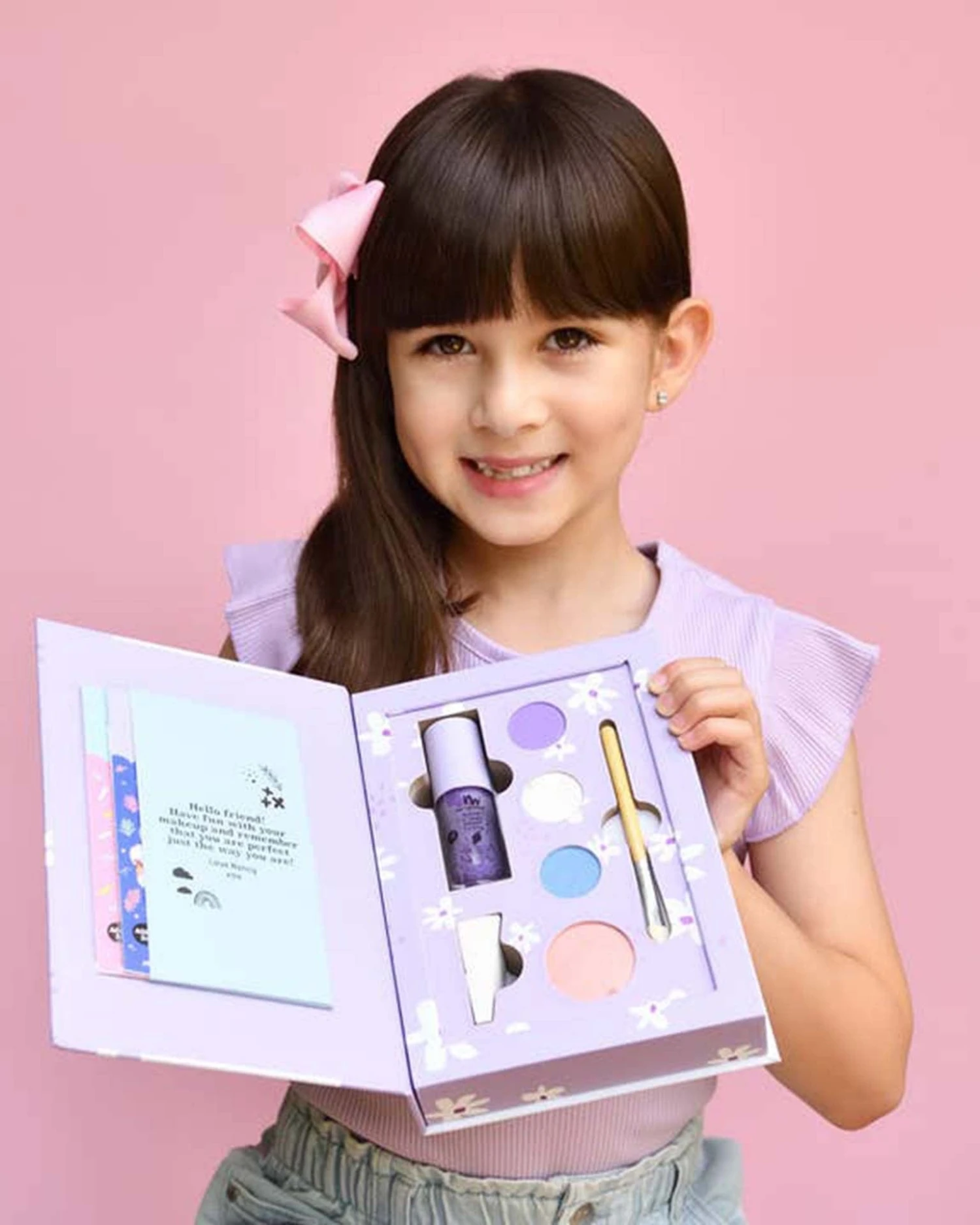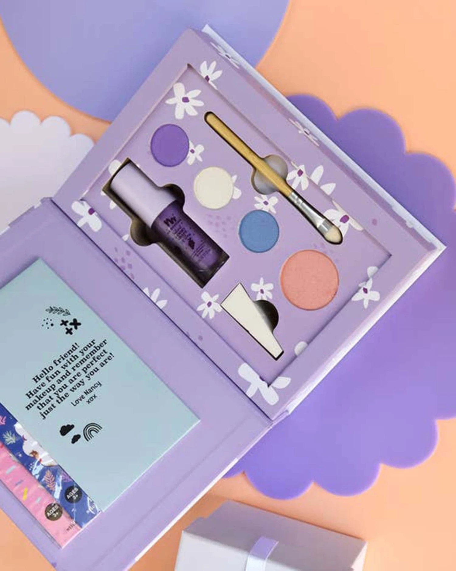 Be the hero your lipstick needs and keep it away from tiny hands! No Nasties makeup boxes are perfect for little skin – all-natural, hypoallergenic, easy to wash off and cruelty-free. This set includes everything your little one needs to get glam!