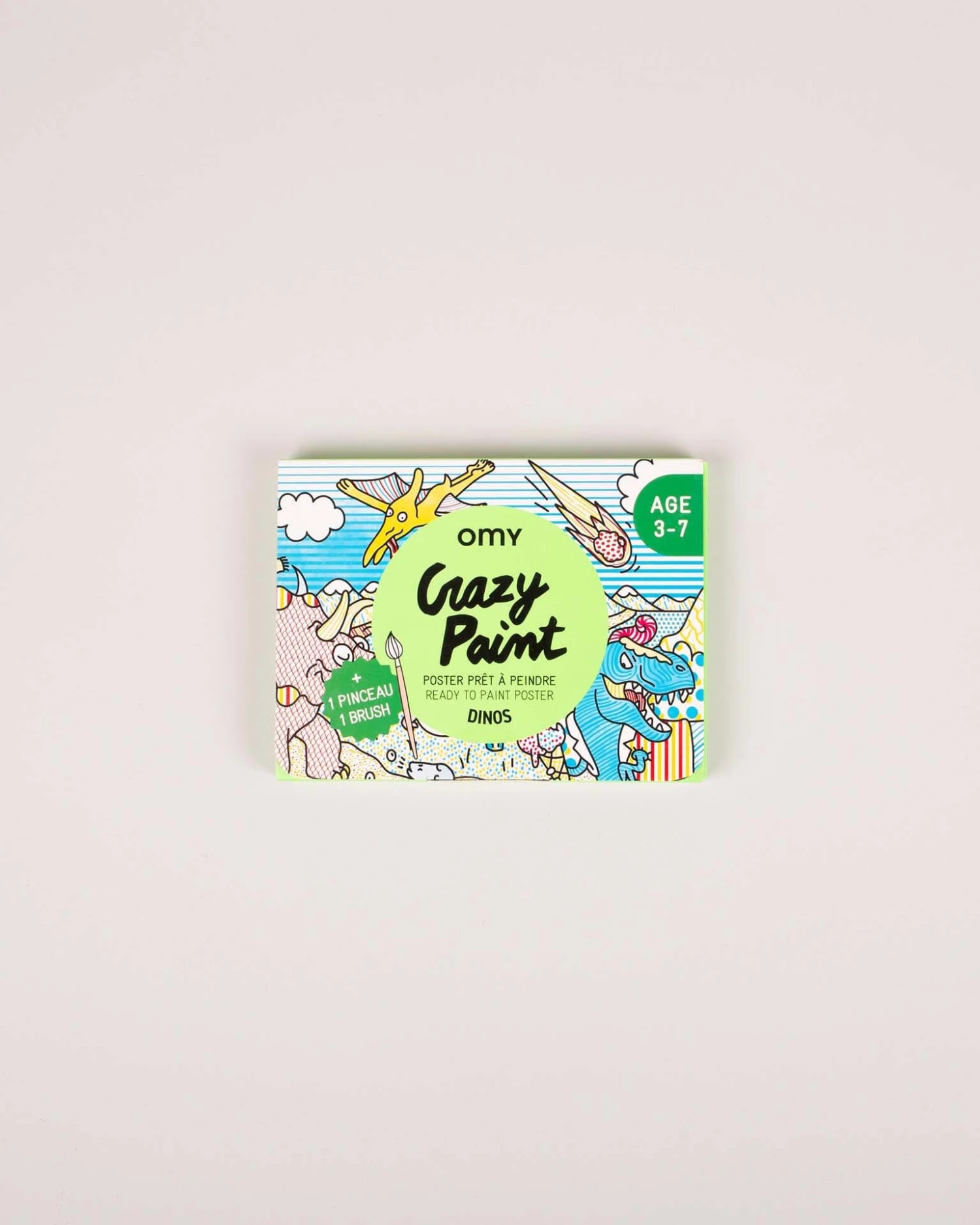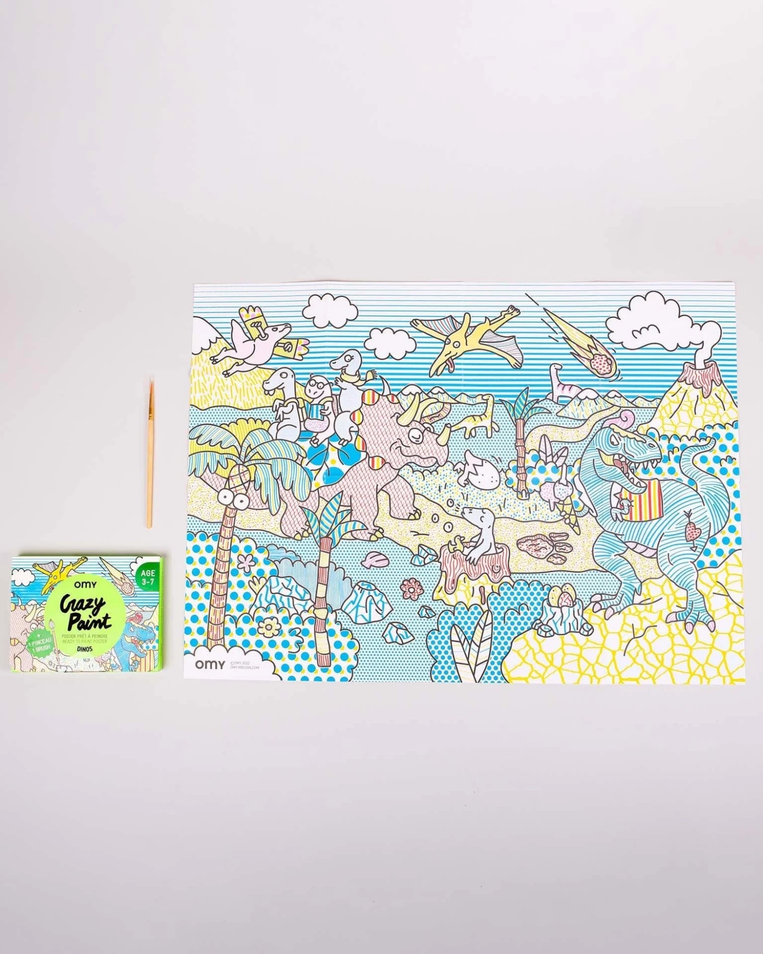 Discover the world of extinct dinos with this crazy paint kit from Omy. With paint dots already printed on the paper, all you need is water and the brush to create your crazy painting. Perfect for travel or rainy days indoors.