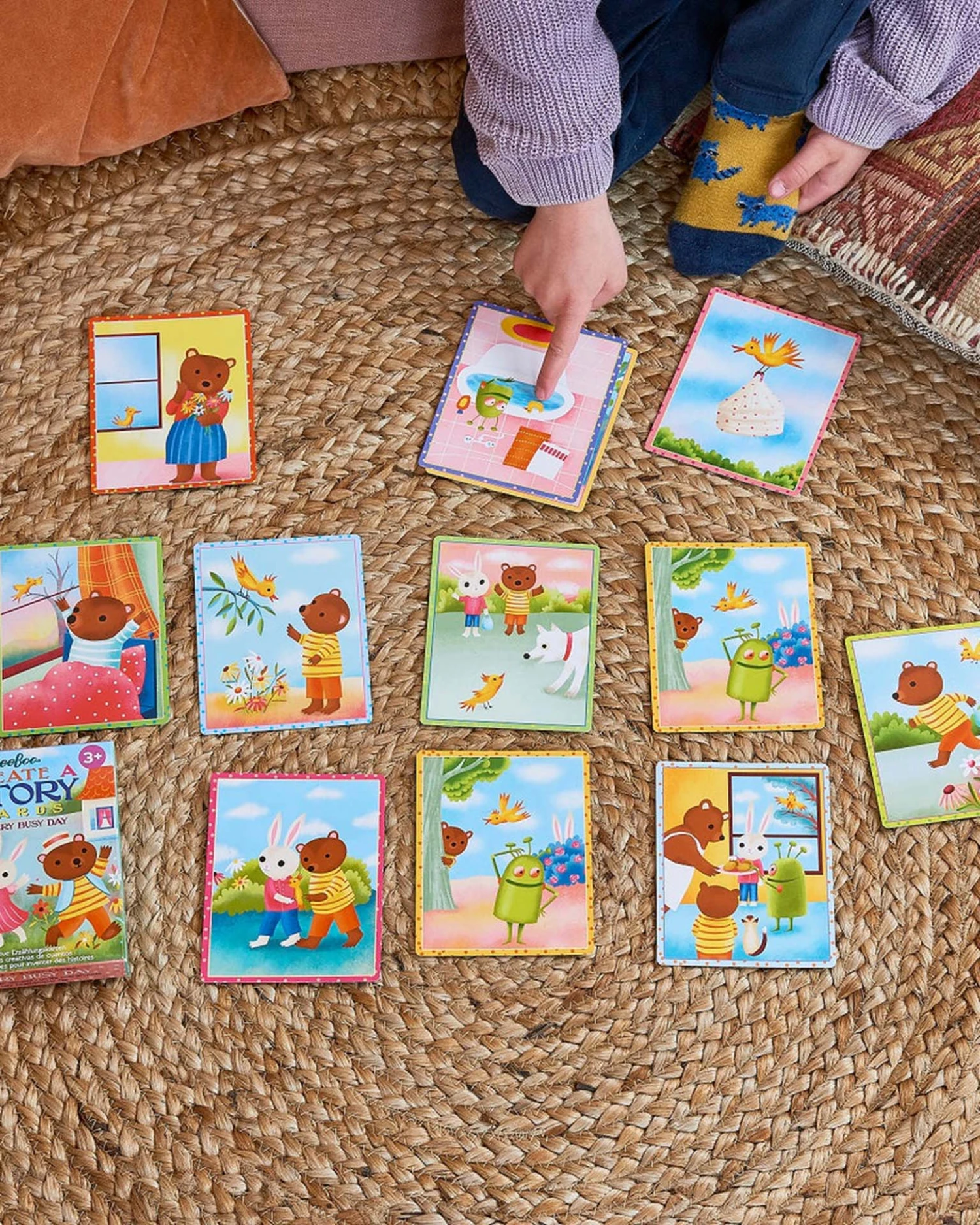 A bird, a bunny, a bear, and a martian set off on an adventure! What mischief could they possibly get into? In this set of 36 whimsical cards, the story unfolds as you lay each picture down. There are no rules, only charmingly illustrated invitations to imagine. Where the story goes is completely up to your child!
