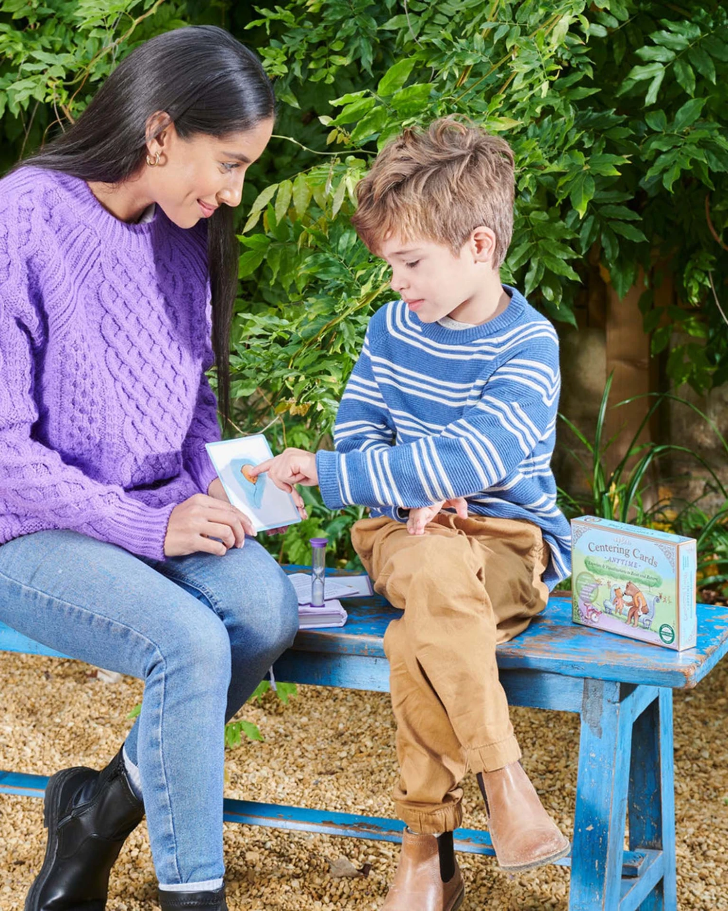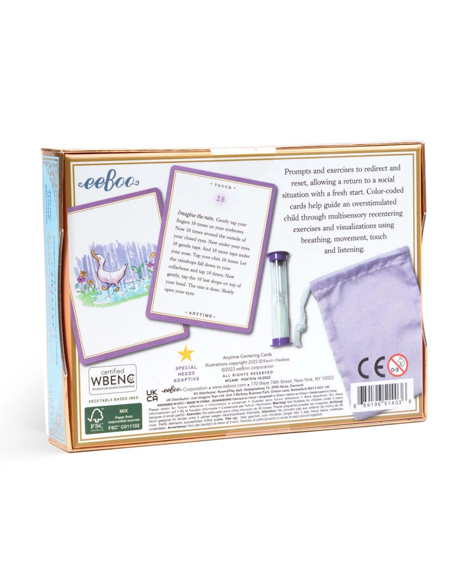 Developed in consultation with parents, teachers, and a highly respected child psychologist, Anytime Centering Cards are an invaluable resource when a child needs to be brought into balance before returning to a social situation. 36 illustrated cards offer exercises using a variety of strategies including breathing, sensory cues, and visualizations to calm, redirect, and focus the child. Delightful illustrations by Kevin Hawkes. Thoughtful instructions included.