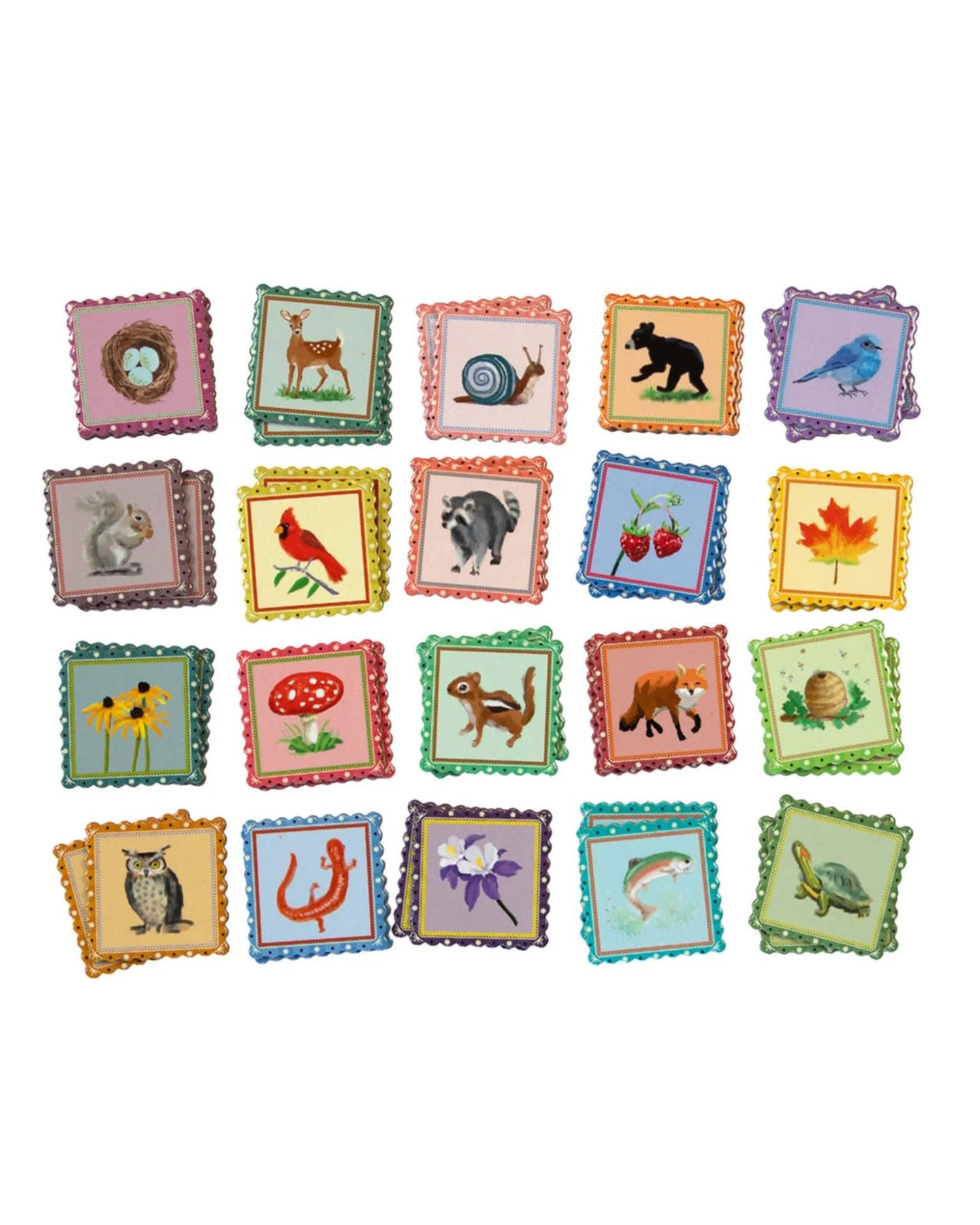 - Set includes 20 pairs of 2” x 2” illustrated tiles to match
