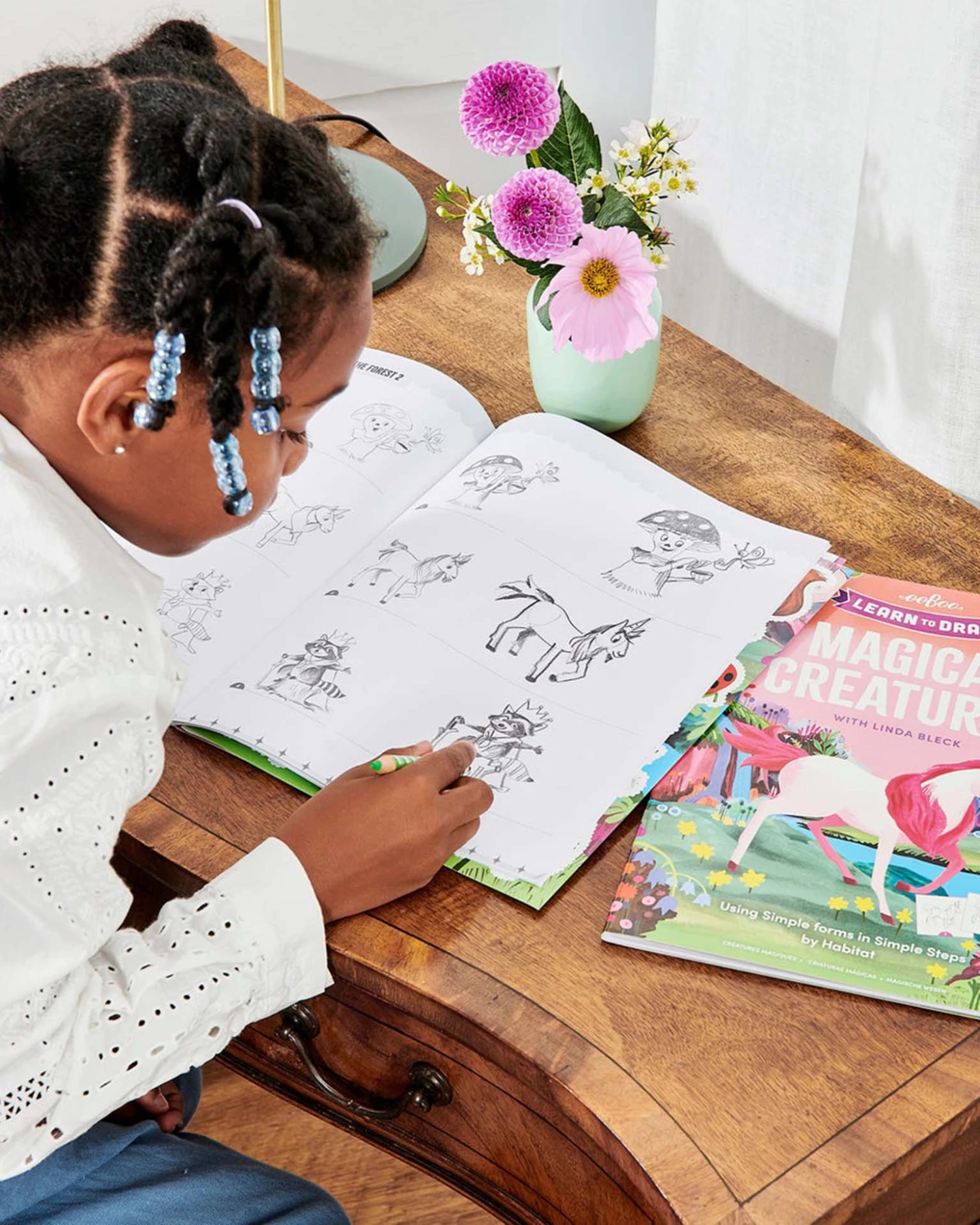 Learn to draw different types of magical and folkloric animals and whimsical environments in sequential steps. Lessons are divided into four sections and organized by magical habitat, each part ending with a two-page landscape spread for you to populate with the creatures and fantastical objects you have learned to draw!