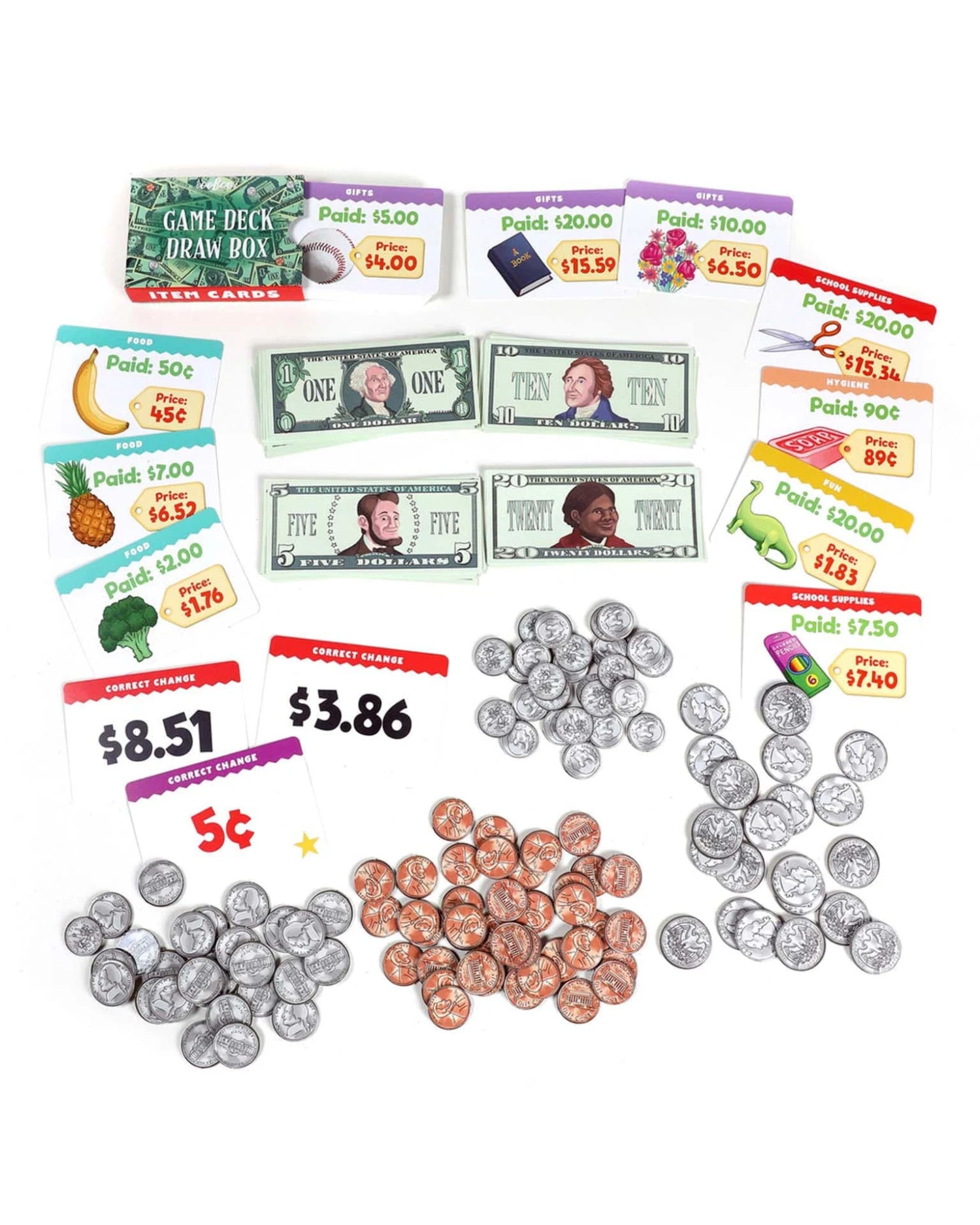 Making Change is an educational game where players use mental math to subtract the price of an item from the amount paid to make the correct change. Whoever collects the most items wins, get one item from each of 10 categories for bonus points. Making Change helps to build practical math skills.