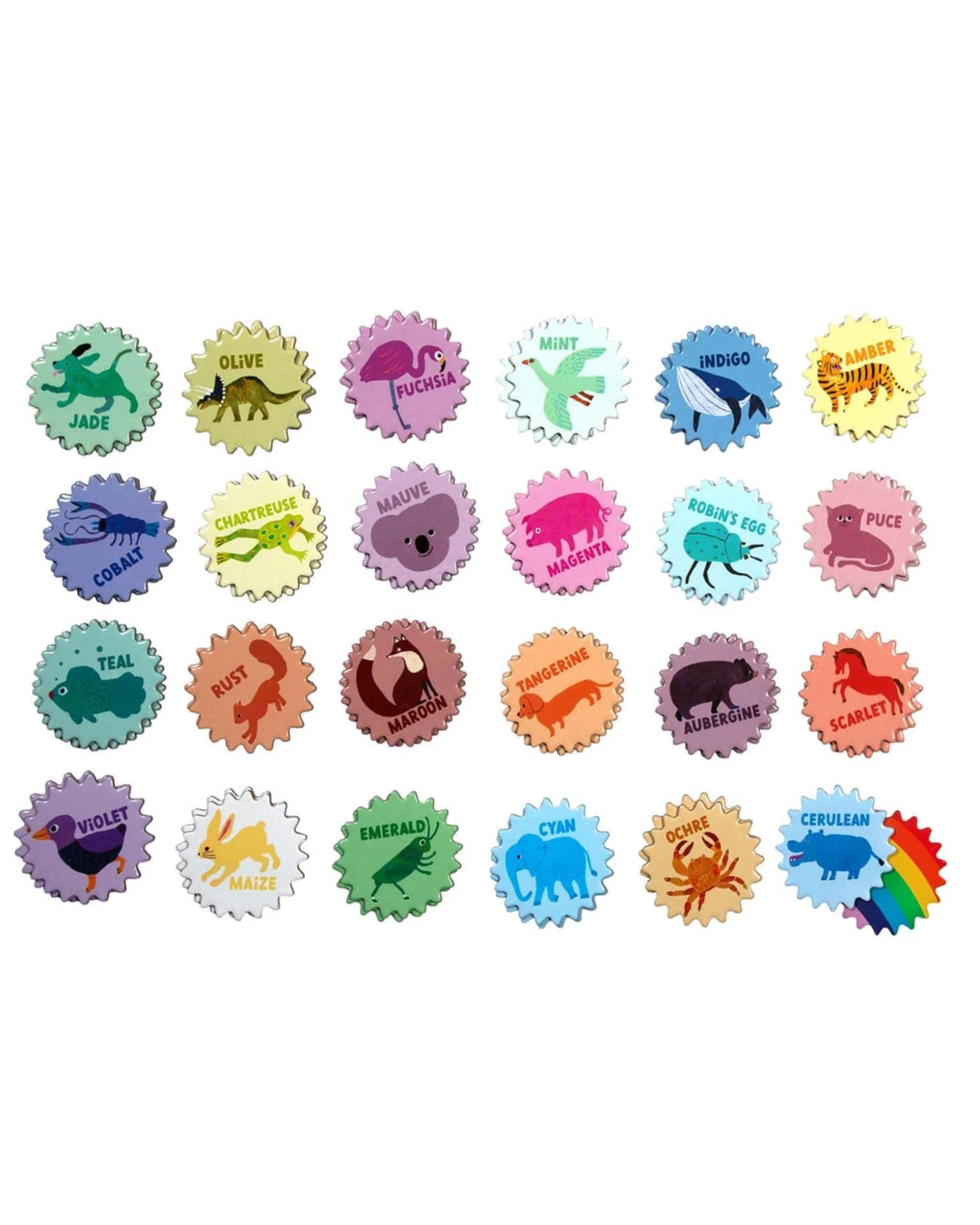 A classic matching game that builds vocabulary, concentration, and observation skills. Learn to recognize, discern, and practice the wonderful language of color. Learn basic colors but also tones and subtleties within the spectrum. Tiles feature sophisticated color vocabulary, sharpening precision in identifying different hues. Puce, chartreuse, and crimson and more. Once you know these colors you will see them everywhere; use them to enrich your story telling as well as to appreciate the depth and detail within books and conversation.