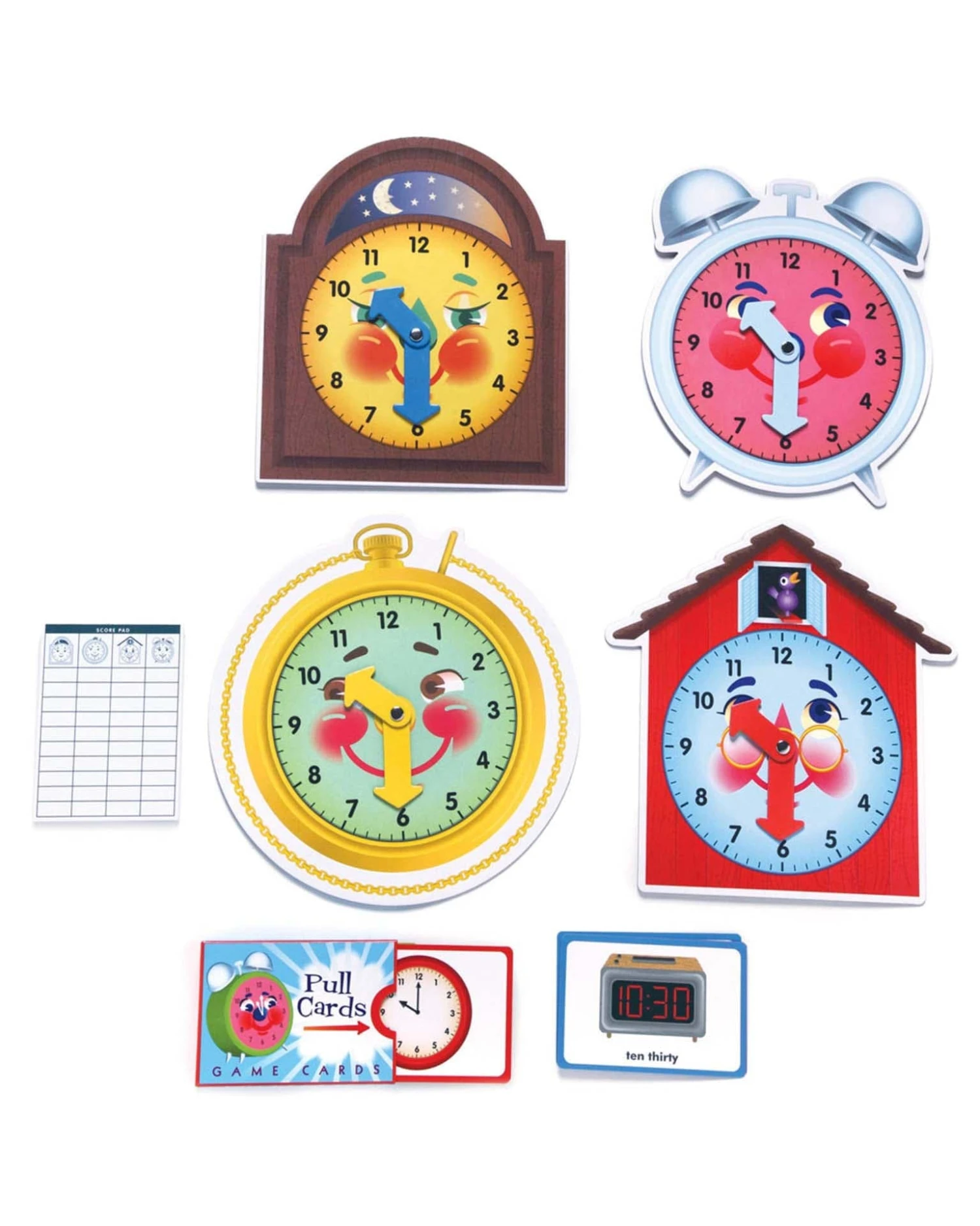 - Includes: Score pads, 50 time cards, and 4 clock mats
