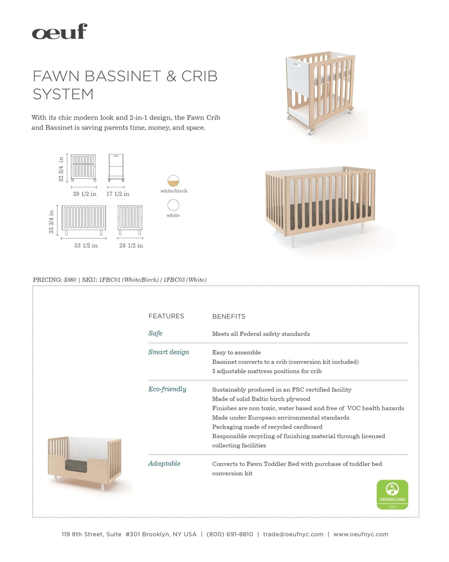 - Crib converts to toddler bed with purchase of Fawn Conversion Kit (sold separately)