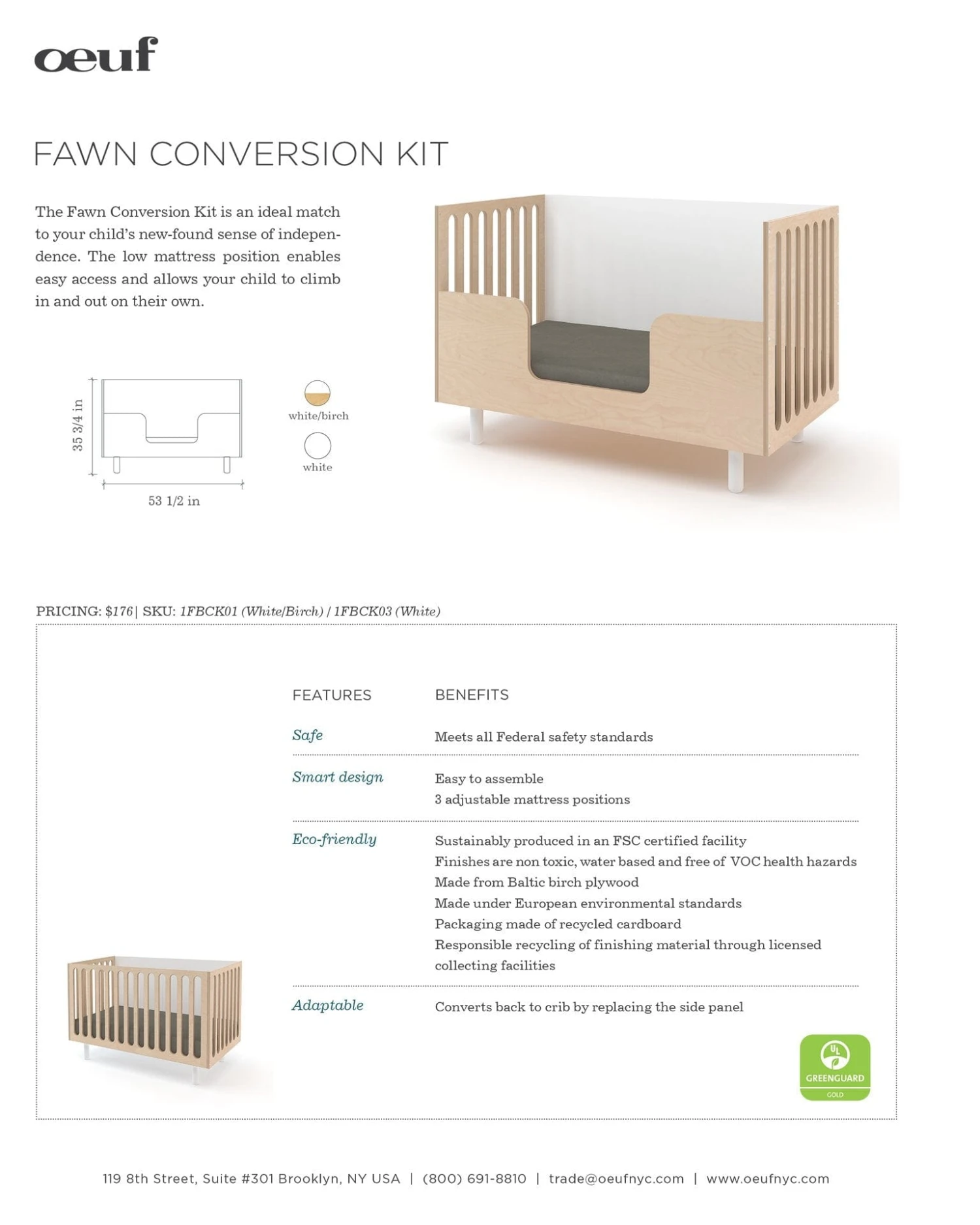 The Fawn conversion kit turns the Fawn crib into a day-bed style toddler bed.