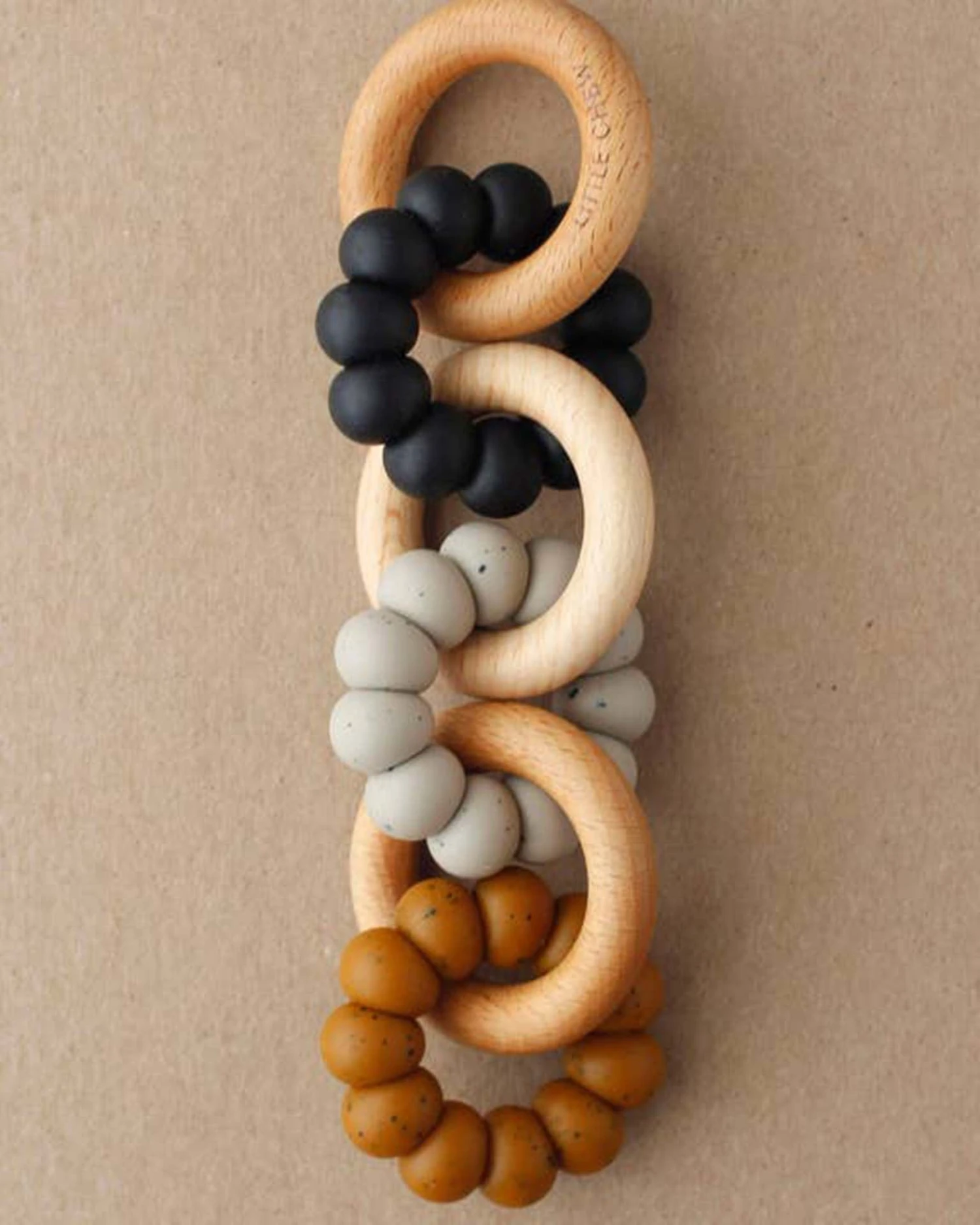 littleCHEW products are built with completely non-toxic food-grade silicon and 100% natural beech wood. Each piece is handcrafted with love and care under the highest safety code that meets USA and European standards. Each item is one of a kind, reusable and washable.