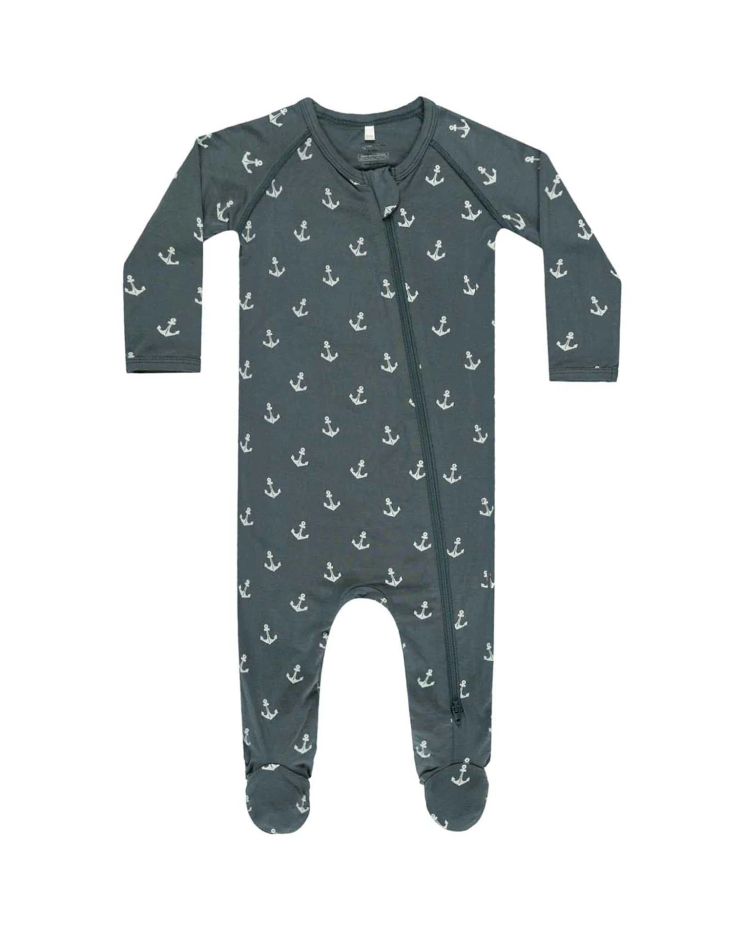 Super Soft + stretchy bamboo footie features a front zipper for easy changing.