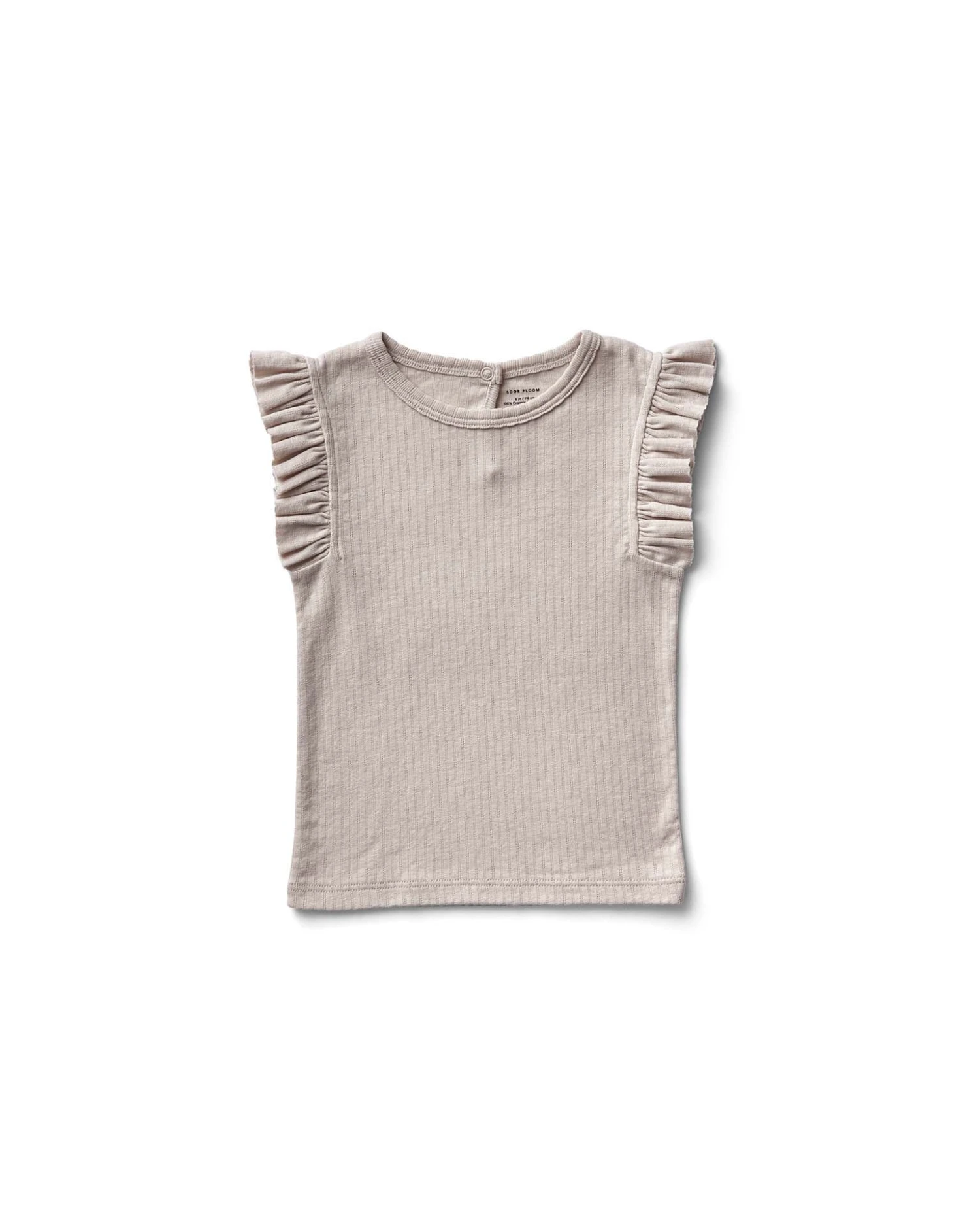 The Frill Tee from Soor Ploom is a versatile sleeveless top with a frilly edge in the softest rib. Featuring a snap closure at the back neck, this soft cotton piece pairs perfectly with skirts and pinafores.