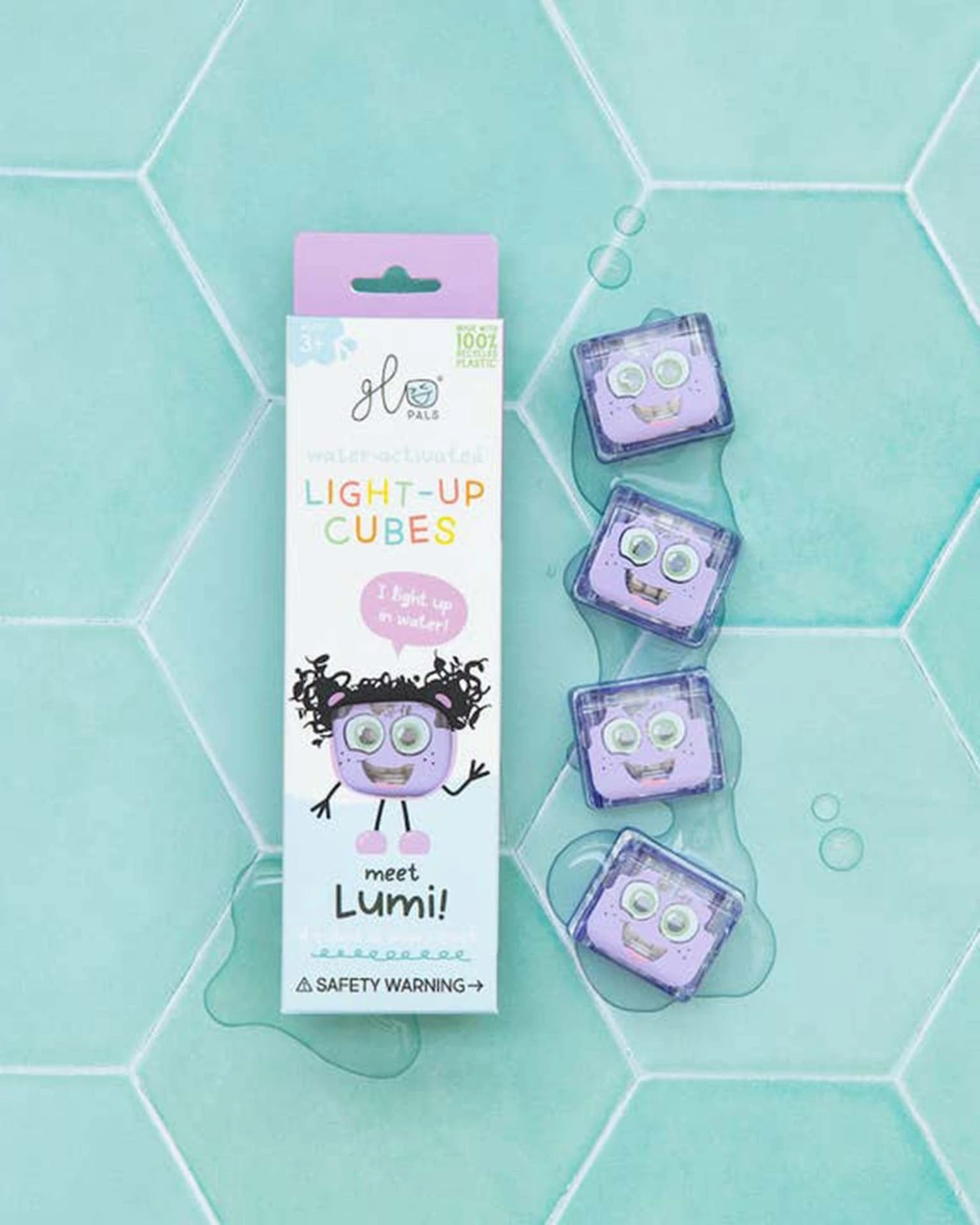 Glo Pals Light-Up Cubes are the perfect way to brighten up playtime – Simply drop your Cubes in water and watch them light up like magic! Each pack includes 4 Light-Up Cubes.