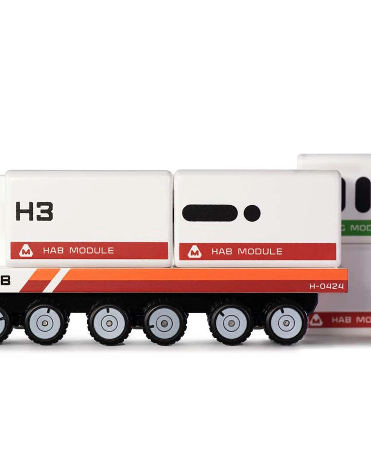 The HAB Transporter is an essential vehicle for the settlers of Mars. Equipped with a suspension base, this vehicle transports many modules for the MARGE crew.