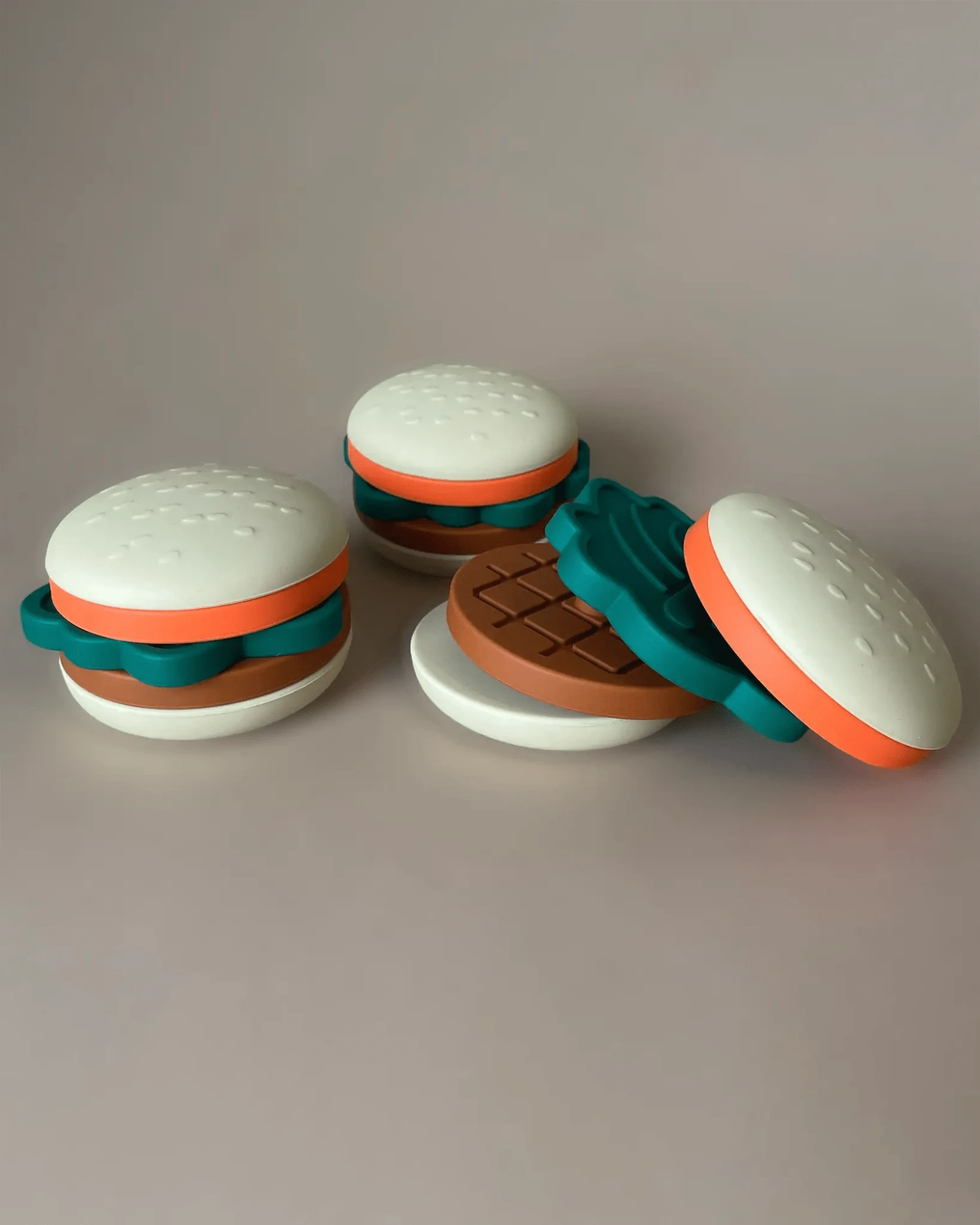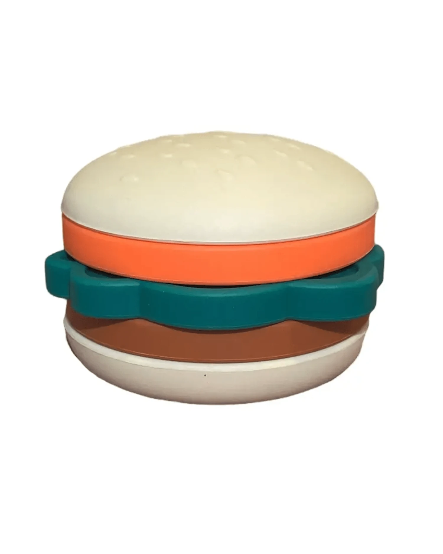 The Hamburger Stacker from Three Hearts is made from silicone through and through. This tasty stacker can be used as a teether or a stacking game. BPA-free, non-toxic, and made from food-grade and medical-grade silicone means these stackers make the perfect baby toy.