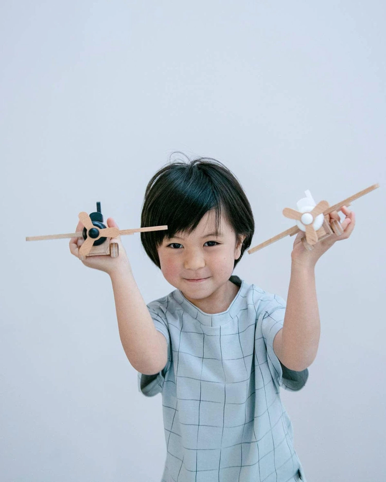 The Hikoki Propeller Plane Kiko+ & Gigi* is a wooden propeller airplane with a pullback friction engine for more fun. The friction engine underneath enables the plane to zip forward on flat surfaces.