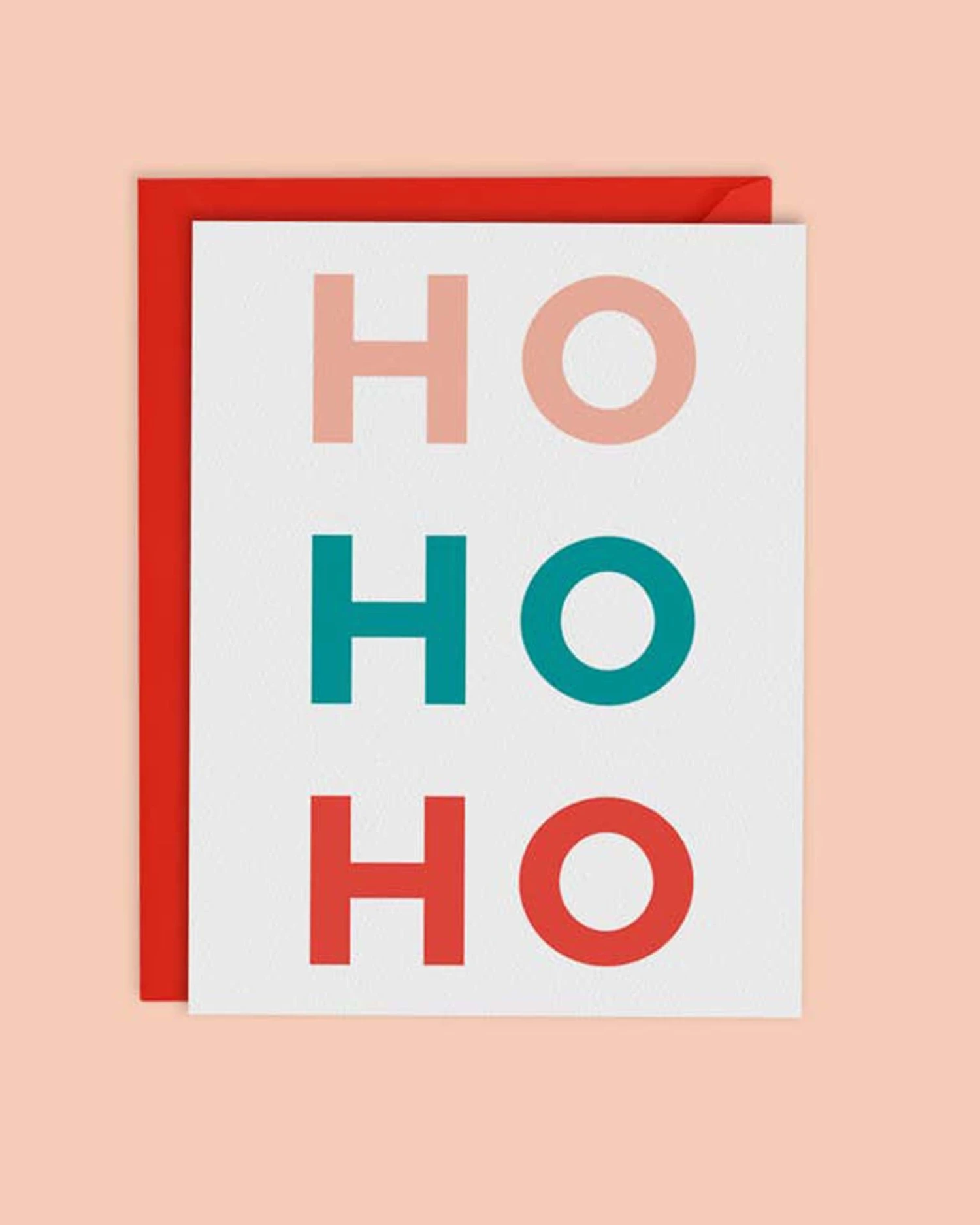 A simple and Modern HO HO HO Santa card. This cards works great for kids’ Santa Claus gifts, to write a Santa message or to wish anyone celebrating Christmas! Designed and printed in USA on bright white matte felt stock. Blank inside for your lovely personal message.
