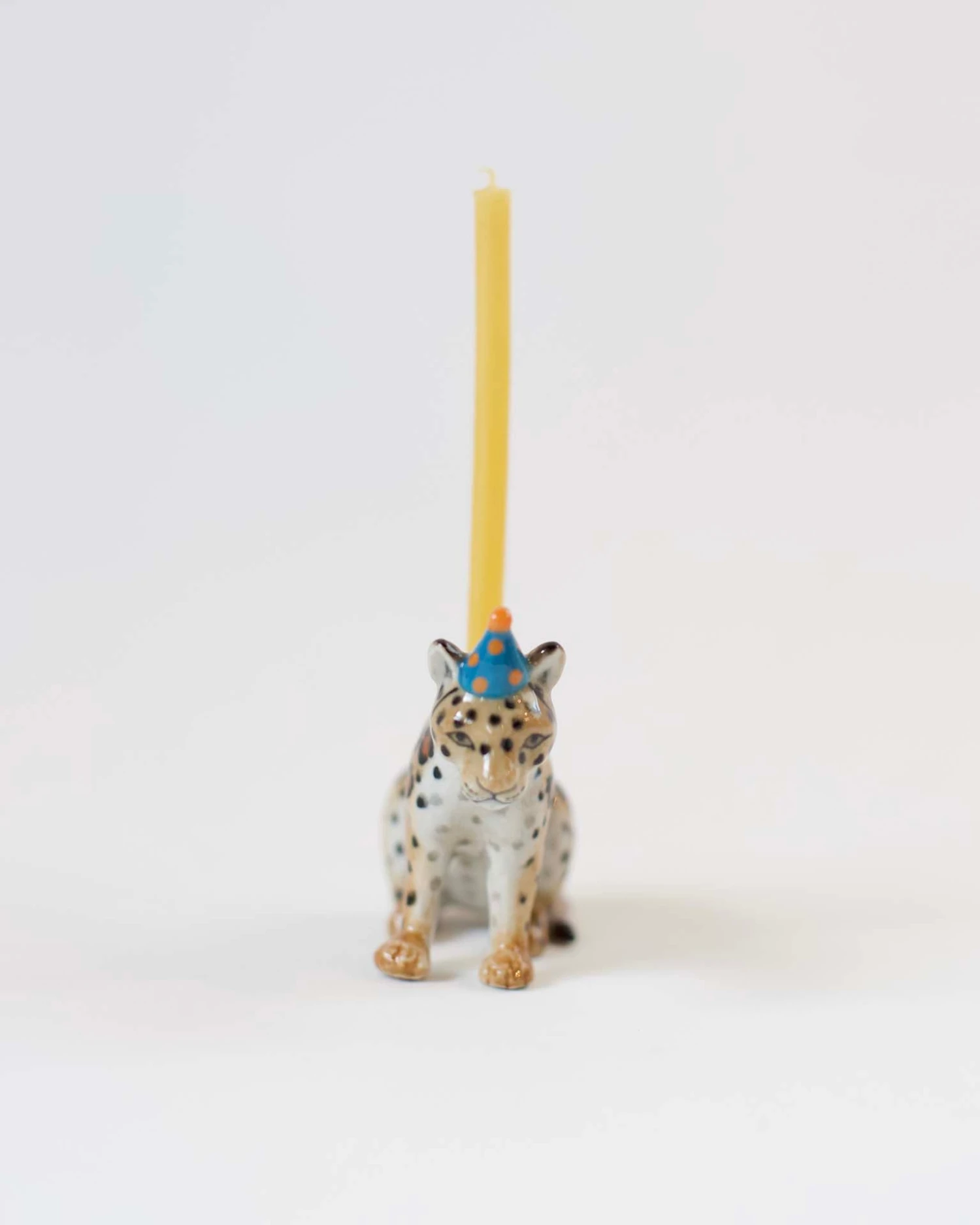 Celebrate with a little whimsy with this ceramic Jaguar Cake Topper from Camp Hollow. This hand-painted candle holder is the perfect accessory for that sweet special occasion. With heirloom-quality craftsmanship, this jaguar is sure to be a treasured family keepsake. Party on!