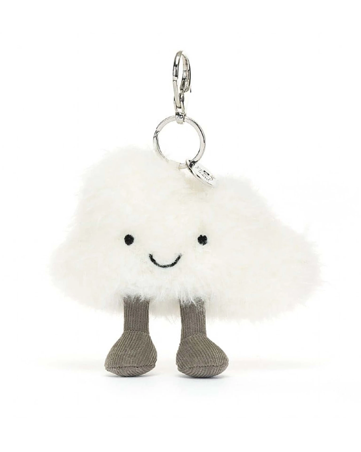 Fluffy and merry with soft, snowy fleece, that’s the Amuseable Cloud Bag Charm! This happy drifter clips onto your bag with a silver claw and sturdy chain. With a Jellycat disc and mocha cord boots, this cloud brings lightness to heavy days.