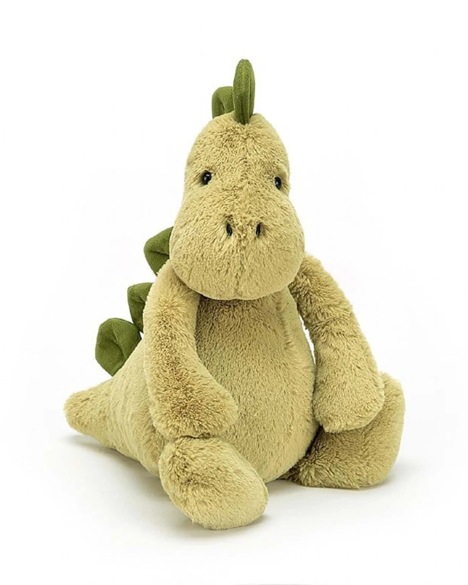Bashful Dino is making history! Soft, not scaly, this mossy matey has chunky stomper-feet, a snuggly snout and fine squishy spines from head to tail! This dynamic dino is always rambling round, giving hugs to every t-rex and triceratops!