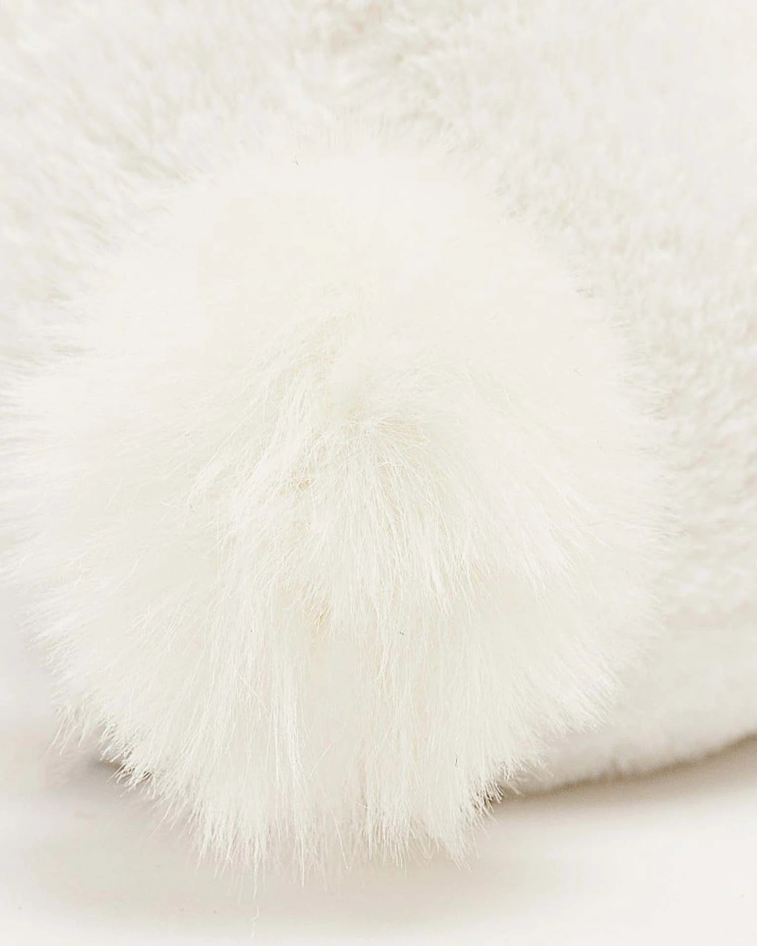 Bashful Luxe Bunny Luna is the dreamiest snow angel. This cloud-soft bunny has snow white fur, marshmallow paws and a glittery gold nose. A peaceful friend with long fold ears, Luna brings soothing Christmas cuddles.
