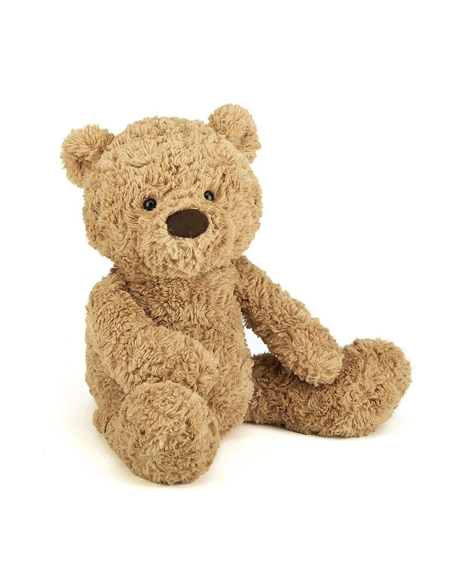 A sandy, dandy teddy, Bumbly Bear is simply scrummy. A ruffly, fluffy fellow with an extra-long snout for vintage style, he’s a classic bear with a modern twist. His large head and tummy and chunky feet make him just the chap for bedtime hugs. With those tufty ears and that chocolate-drop nose, he’s a bear necessity!