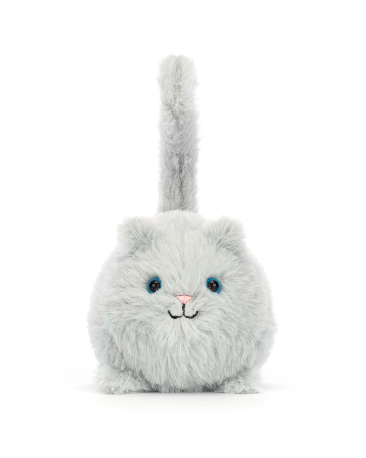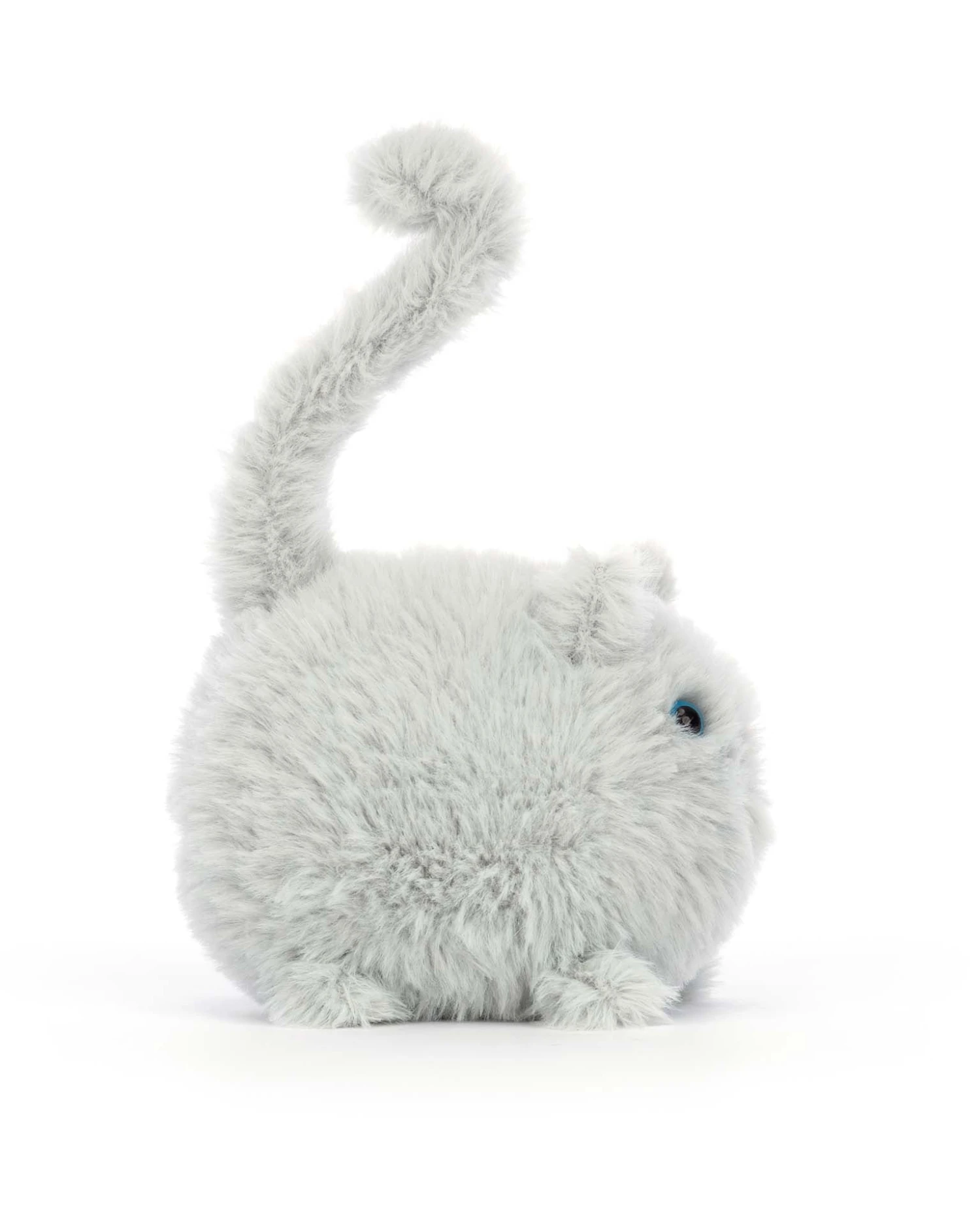 Someone’s ready to pounce! Kitten Caboodle Grey is small but mighty, with a round face and tummy in soft pebble fur. This blue-eyed kitten has bobble paws and ears, a pink stitch nose and a question-mark tail.