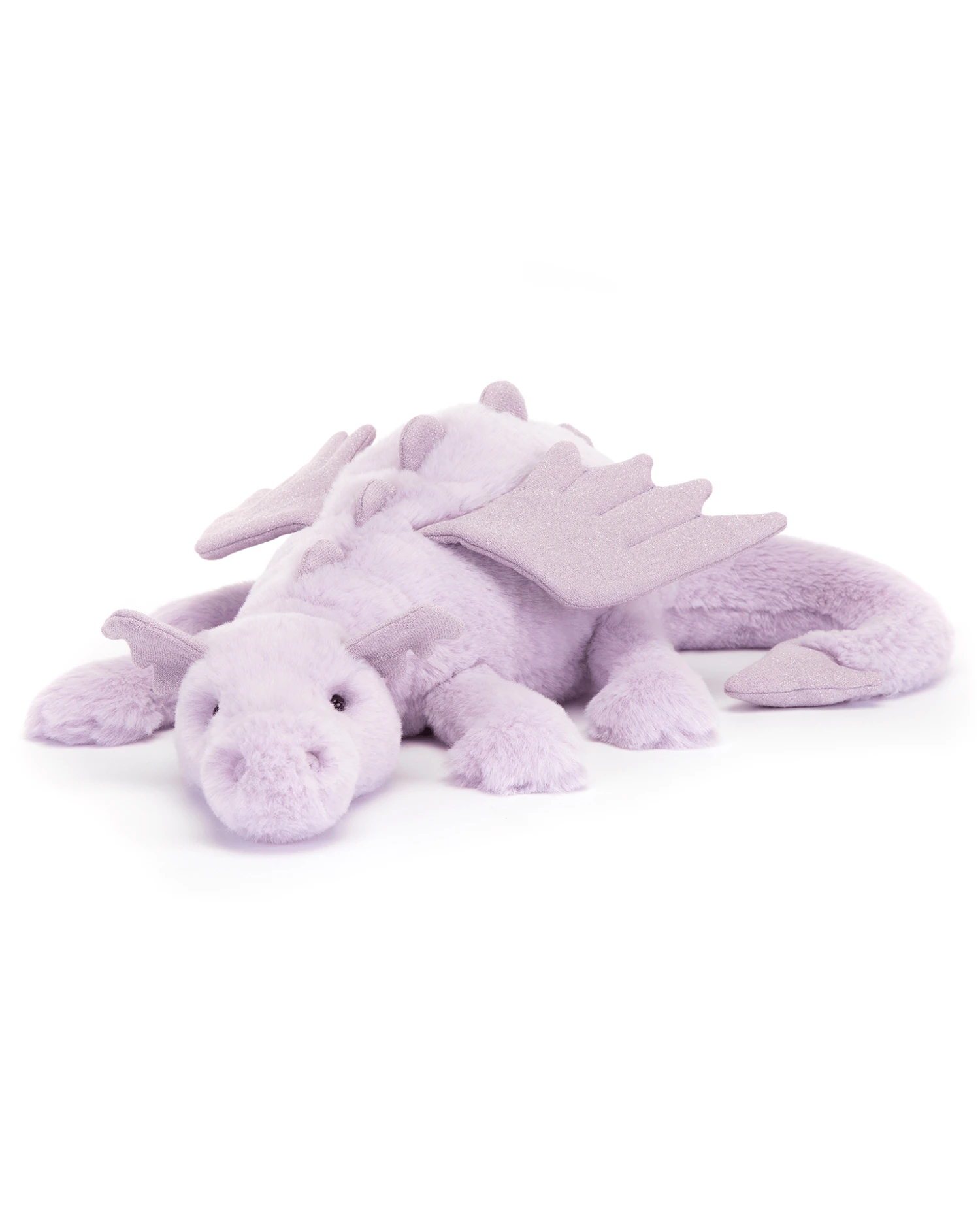See that flash of lilac, high in the sky? Lavender Dragon’s about! Gliding to earth, this long, lopsy dragon makes such a fabulous entrance. With sparkly ears, wings, soft spines and tail dart, and cloudy-soft fur in bold berry purple, this magical friend is a gorgeous guardian.