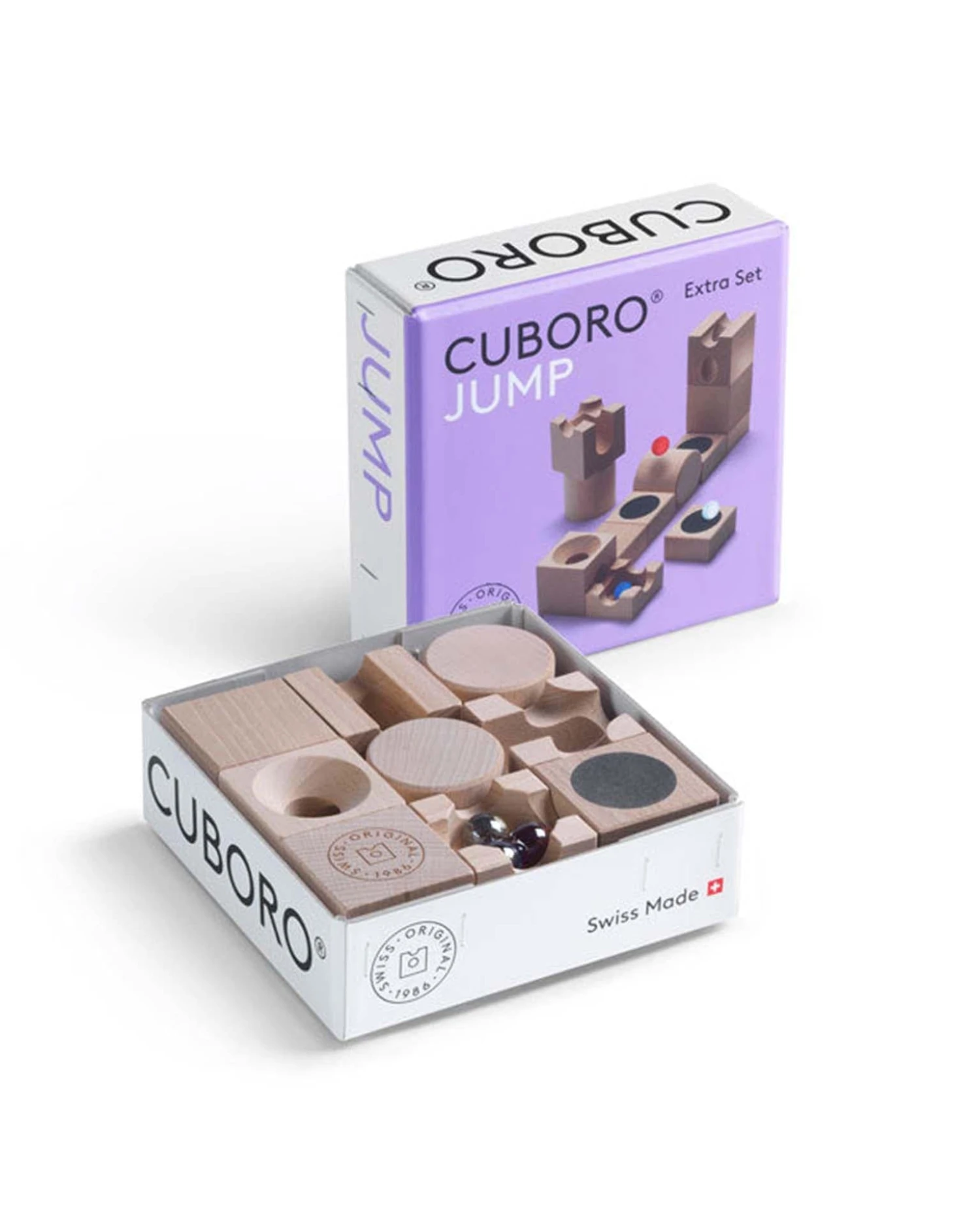 JUMP – the Extra Set for adventurous jumps With the JUMP trampolines, the marbles jump over obstacles and canyons. Extra Sets expand the Starter Sets and offer additional fun. CUBORO challenges children and adults according to their abilities while awakening the joy of experimentation and supporting logical thinking. The marble run system trains fine motor skills, strengthens spatial imagination and stimulates creativity. You can play alone or in a group. CUBORO promotes collaboration – at home, in kindergartens, schools and teams.