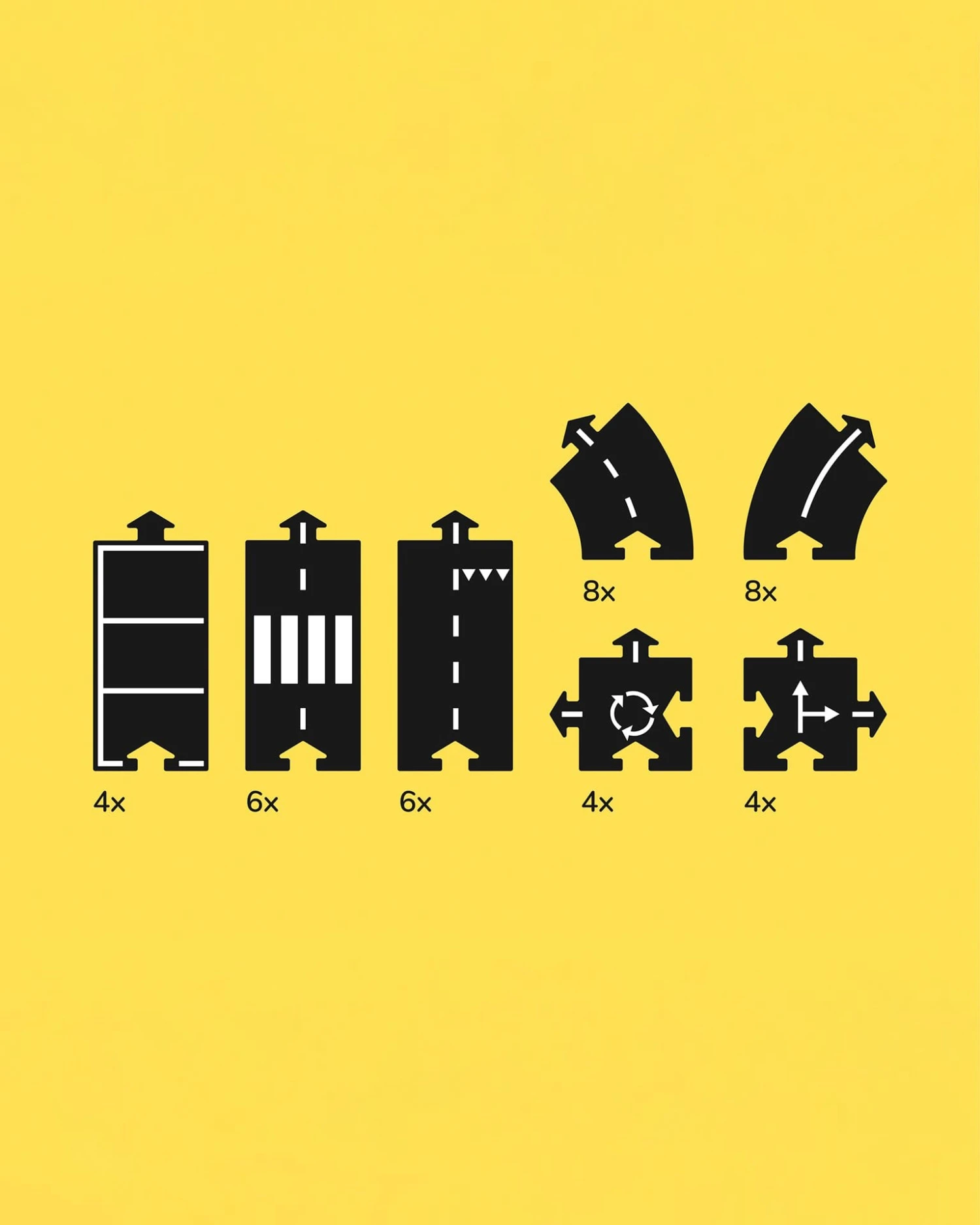 - Includes: 16 curves, 16 straights, 4 intersections + 4 roundabouts