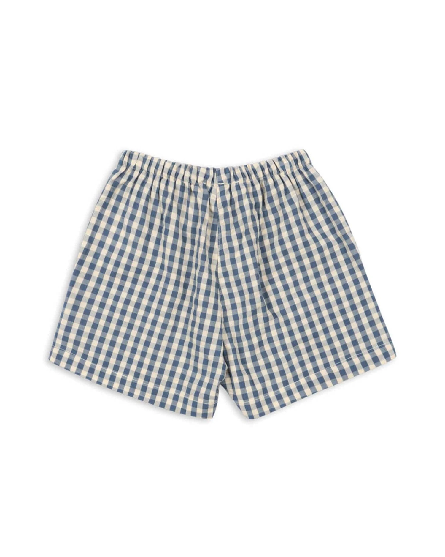These airy 100% cotton shorts are perfect for hot summer days. Pair them with the matching Kim shirt for a darling blue check set.
