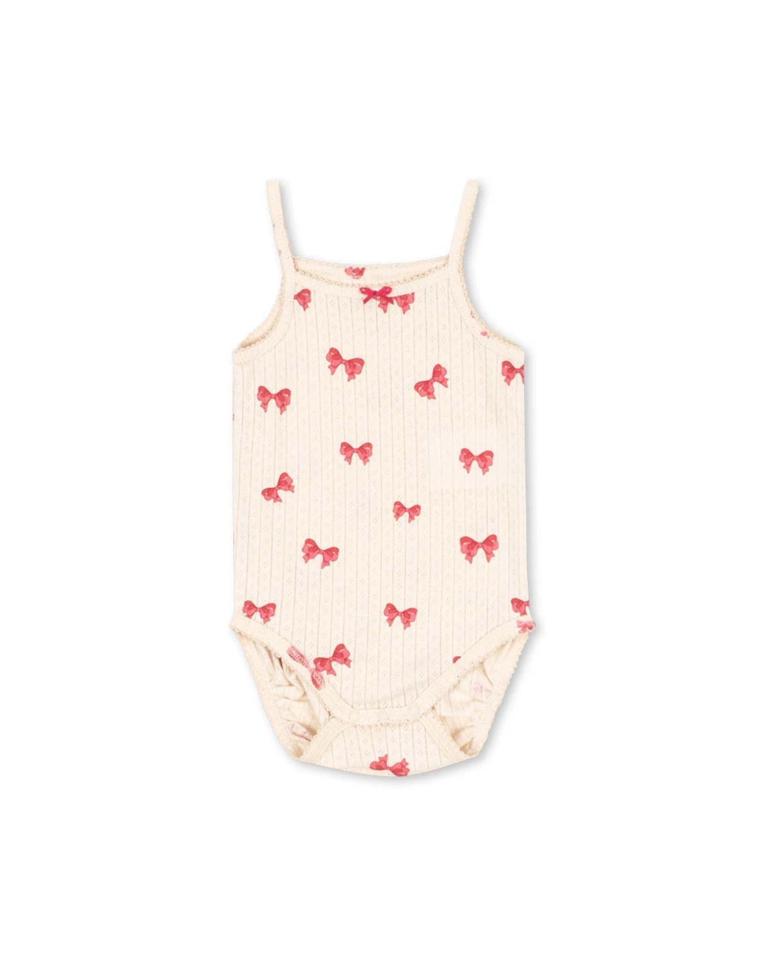 This soft, organic cotton body with a decorative pointelle pattern is designed with press summarys at the leg opening for easy dressing and slim straps.