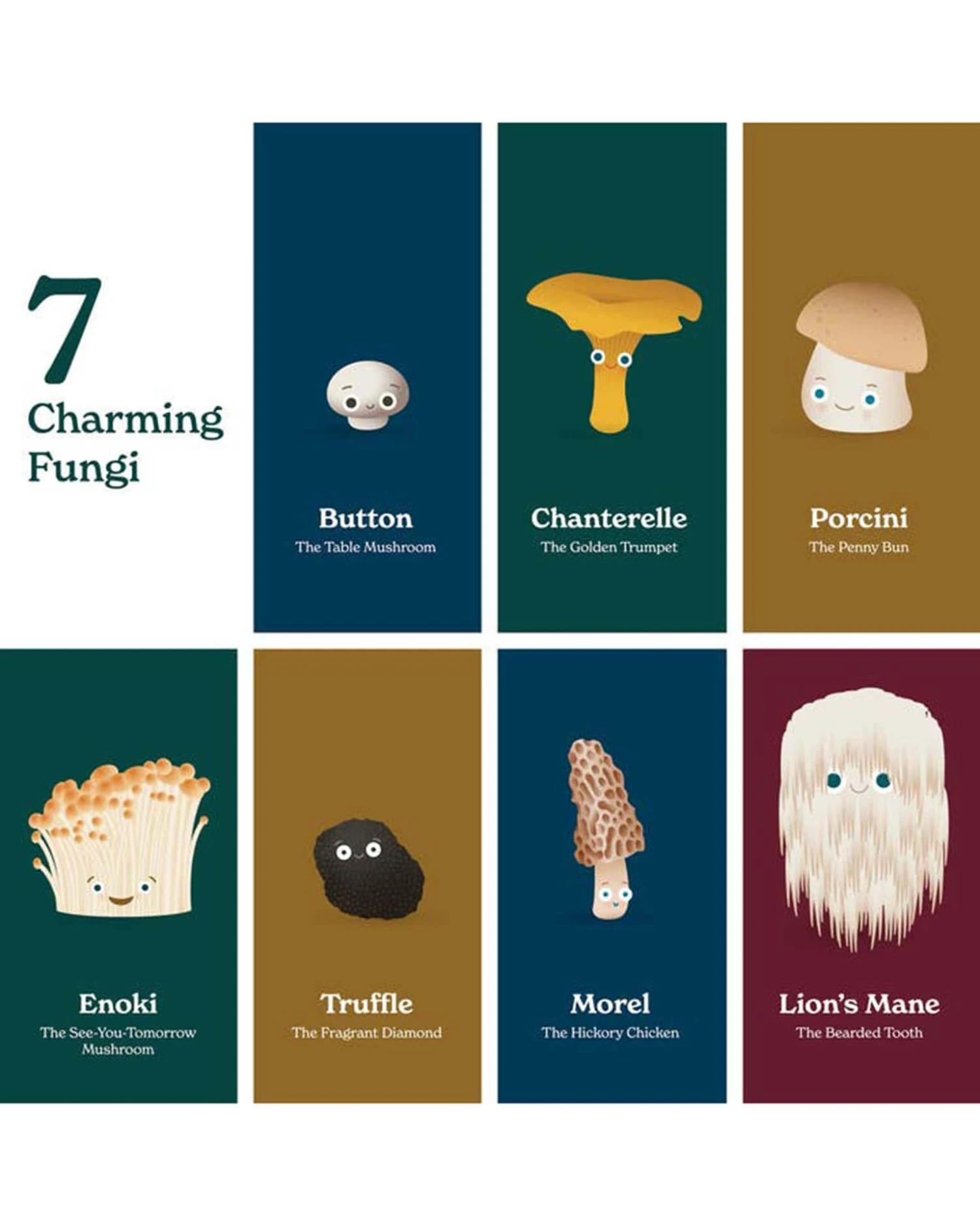Button – Chanterelle – Porcini – Lion’s Mane – Morel – Truffle – Enoki