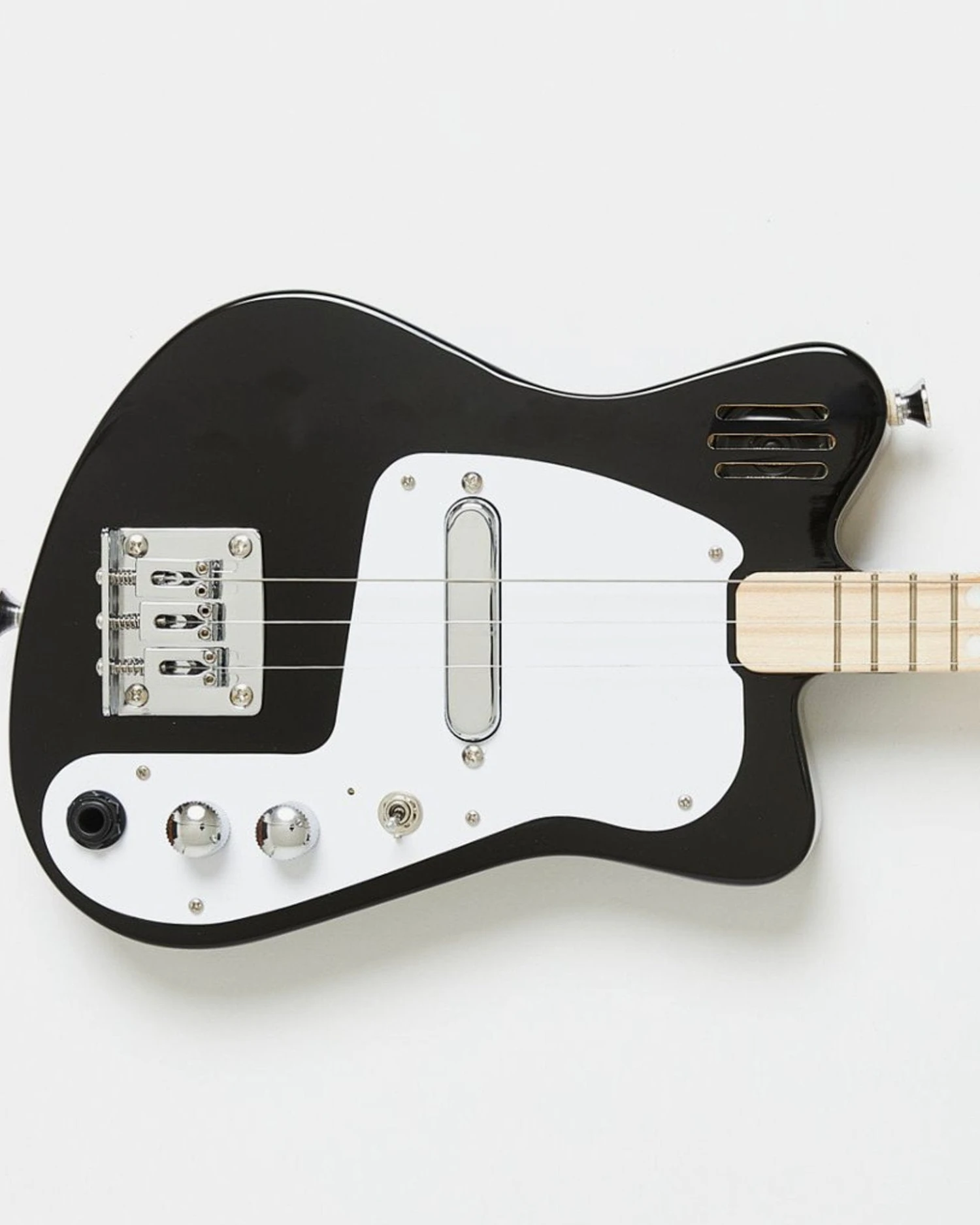 The Loog Mini Electric is a tiny 3-string electric guitar, about the same size as a ukulele, with a built-in amp and speaker! It comes bundled with flashcards, an app that teaches you music through AR and free video lessons.