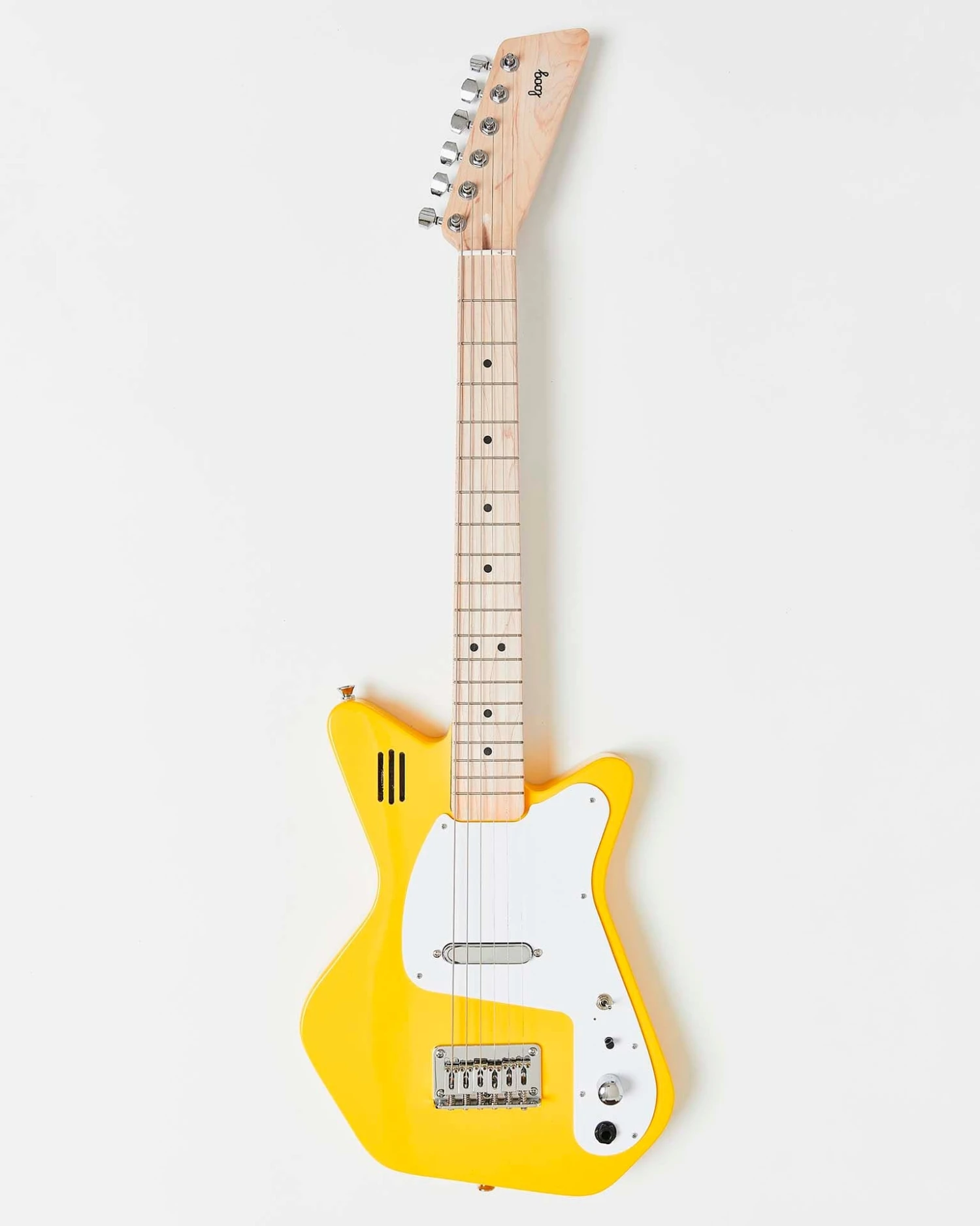 A short-scale electric guitar! The Loog Pro VI Electric comes bundled with flashcards, an app, and free video lessons, making it easy for beginners to finally learn to play guitar.