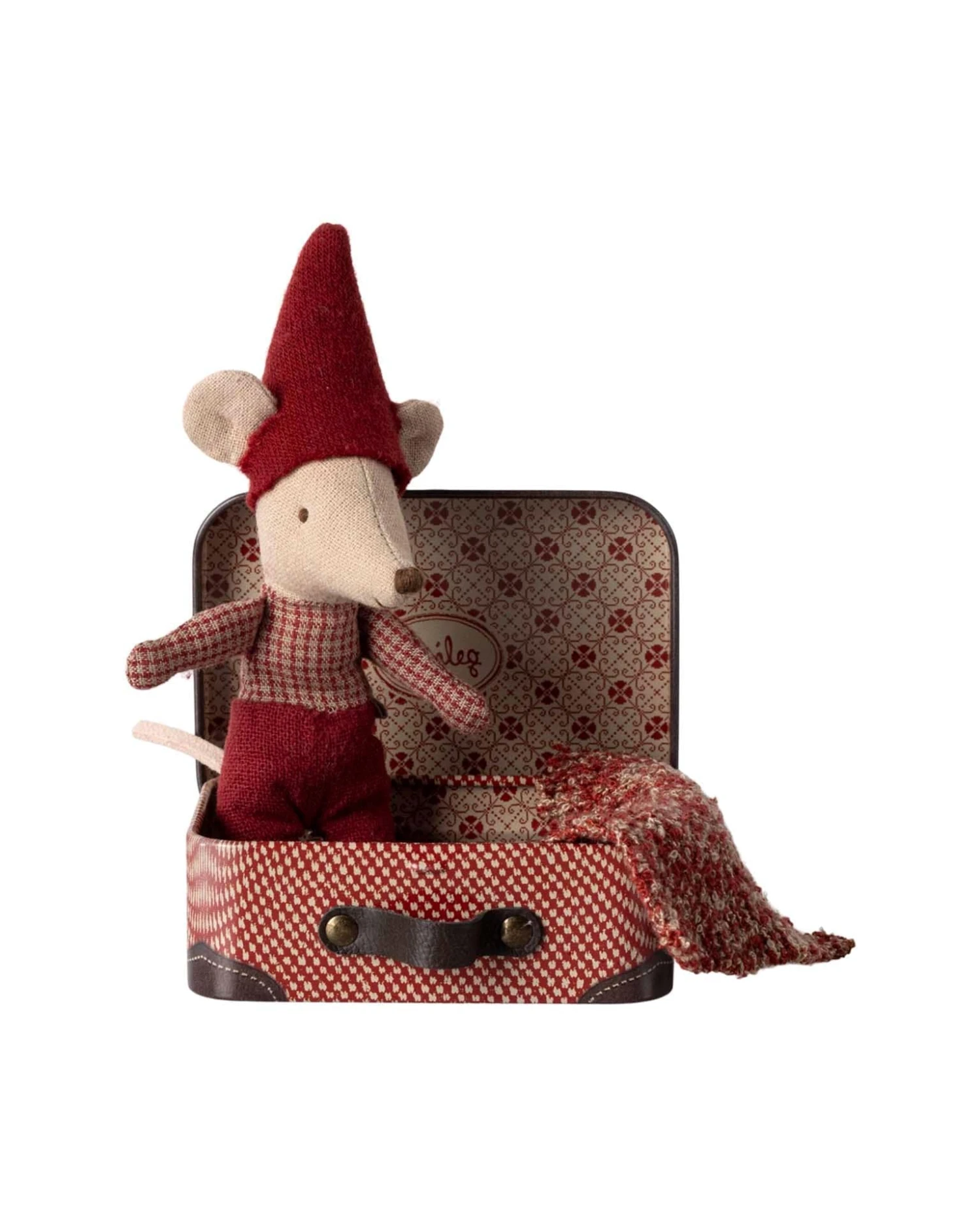 The small travel suitcase comes with a special content this season. Inside the suitcase, a tiny Christmas mouse is sleeping with a warm blanket.